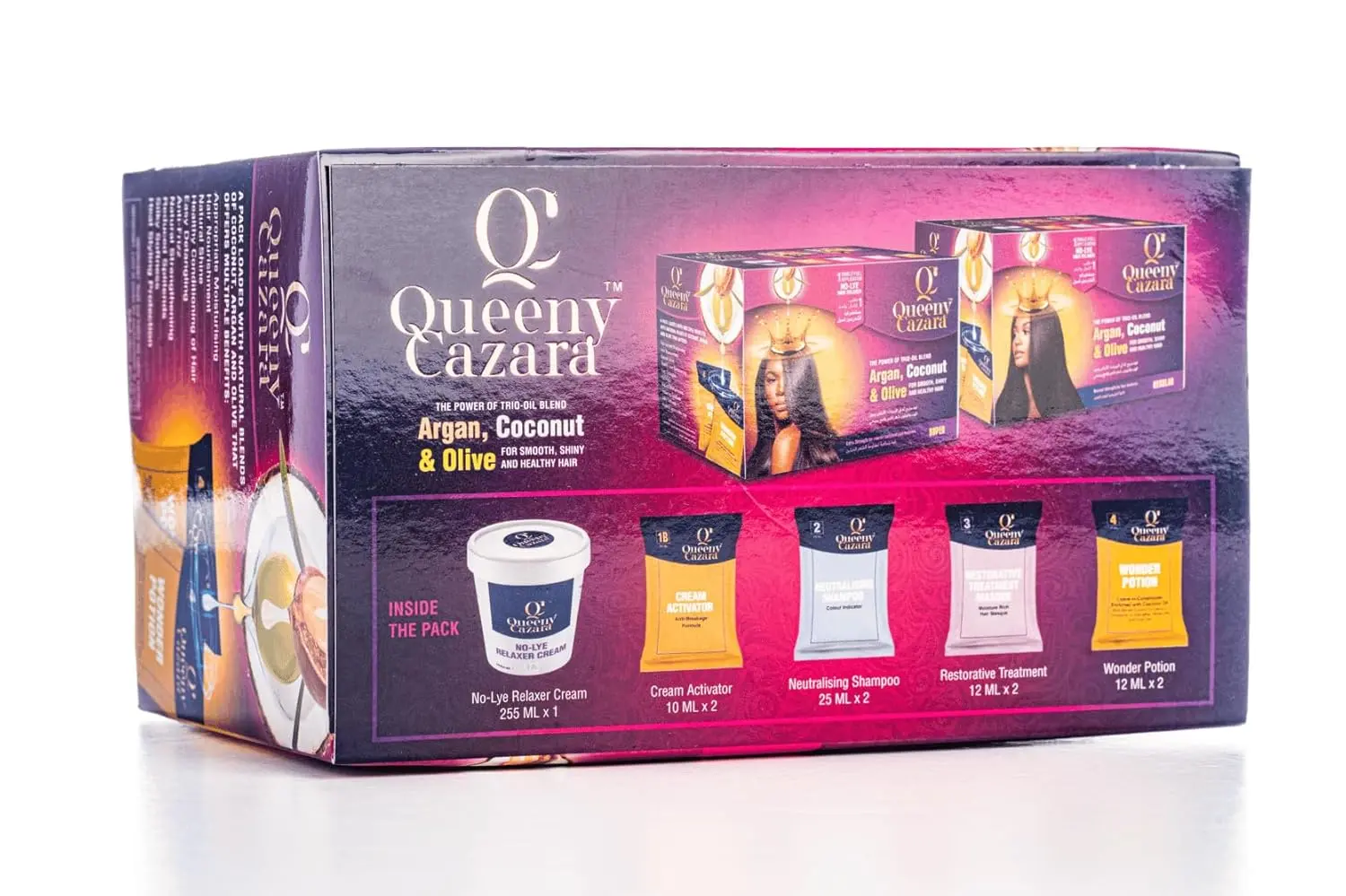 • Includes Relaxer Cream, Activator, Neutralizing Shampoo, and Conditioner.