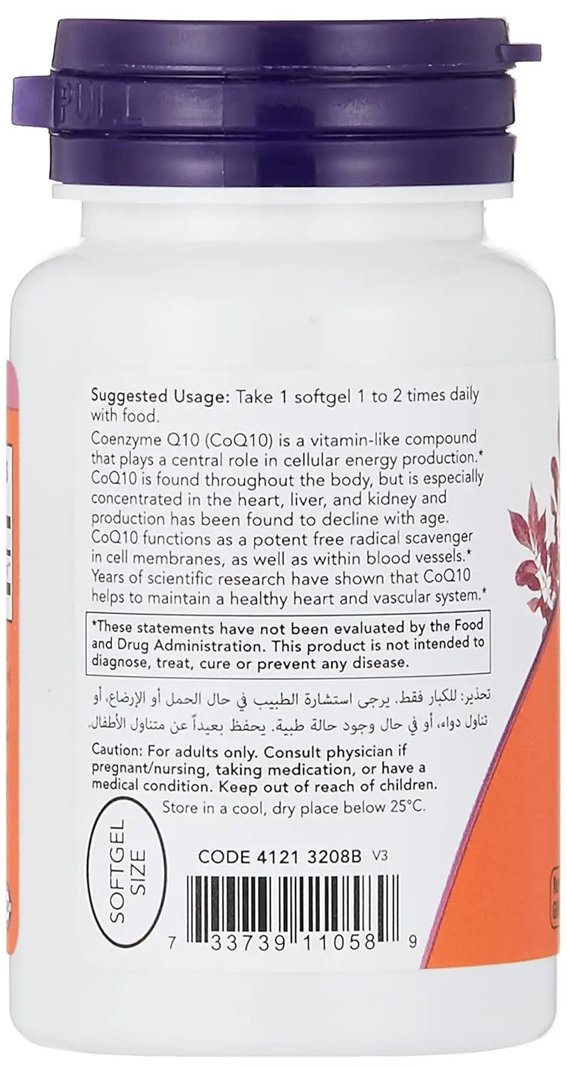 Support your heart health and boost your energy levels with Now Foods CoQ10 100mg. This essential nutrient plays a vital role in cellular energy production, acting as a powerhouse for your cells. CoQ10 is also a potent antioxidant, scavenging free radicals and protecting cell membranes from damage. This formula is further fortified with Vitamin E, providing additional antioxidant support and working synergistically with CoQ10 to promote overall well-being. Now Foods CoQ10 is a convenient and effective way to supplement your diet and ensure your body has the CoQ10 it needs to function optimally. Maintaining healthy CoQ10 levels is especially important as we age, as natural production tends to decline. Support your body’s natural defenses and fuel your energy with Now Foods CoQ10. This supplement supports a healthy heart muscle. The powerful antioxidant properties of CoQ10 safeguard cell membranes, contributing to overall cellular health and resilience. Vitamin E further enhances this antioxidant protection, creating a comprehensive defense against free radical damage. Experience the benefits of increased energy and enhanced heart health with Now Foods CoQ10 100mg. Give your body the support it deserves!