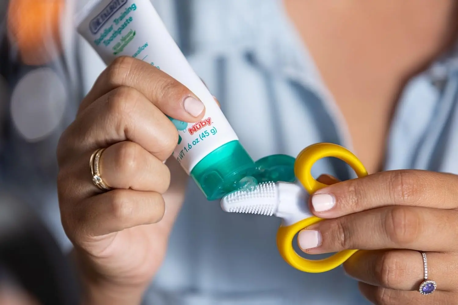 Soothe your little one’s teething discomfort with the Nuby Nananubs Banana Teether Massaging Toothbrush! Designed for babies 3 months and older, this adorable banana-shaped teether is crafted from ultra-soft, 100% silicone, making it gentle on delicate gums and emerging teeth. The innovative design features massaging bristles that provide soothing relief while gently cleaning. NanaNubs isn’t just for baby; it’s designed for easy use by parents! The fun banana shape provides a comfortable grip, allowing you to assist in cleaning your baby’s gums and new teeth. Keeping NanaNubs clean is a breeze too! It’s top-rack dishwasher safe and can even be boiled for sterilization. Rest assured, Nuby prioritizes your child’s health. NanaNubs is made from safe, BPA-free materials. Give your baby the gift of comfort and oral hygiene with the Nuby Nananubs Banana Teether Massaging Toothbrush. It’s the perfect solution for teething relief and early oral care.
