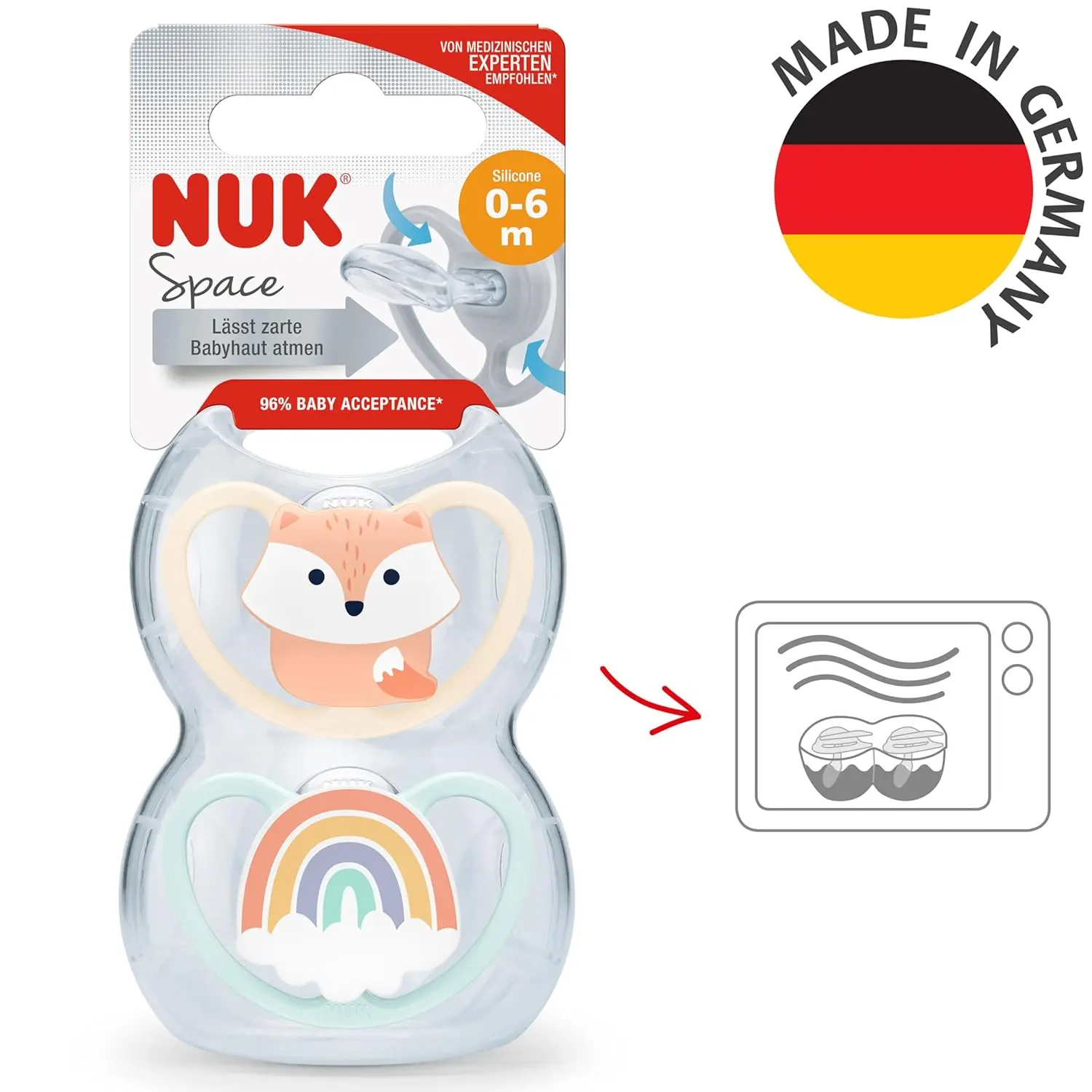 Made in Germany with the highest quality materials, the NUK Space Dummy is BPA-free, ensuring your baby’s safety. Each soother comes with a reusable carry case that doubles as a microwave sterilizing container, making cleaning and hygiene effortless. Choose the NUK Space Dummy for a soother that prioritizes your baby’s comfort, health, and well-being. This is not just a pacifier; it’s a thoughtful solution for sensitive skin and healthy development, trusted by mothers worldwide.