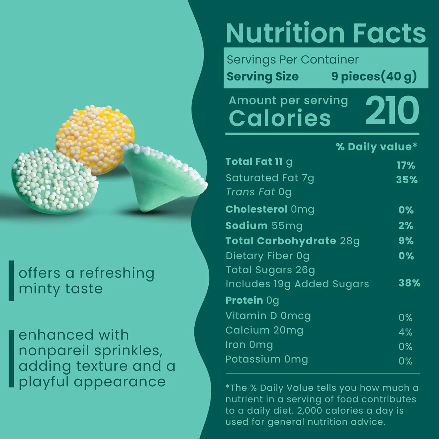 Our Smooth and Melty Mints are carefully enhanced with nonpareil sprinkles. These tiny dots of sugary goodness add a delightful texture and a playful appearance that’s sure to bring a smile to your face. They’re perfect for movie nights, birthday parties, or simply enjoying as a sweet treat on a cozy afternoon. Experience the joy of Nutic Pastel Mints and discover a world of refreshing flavor and delightful charm!