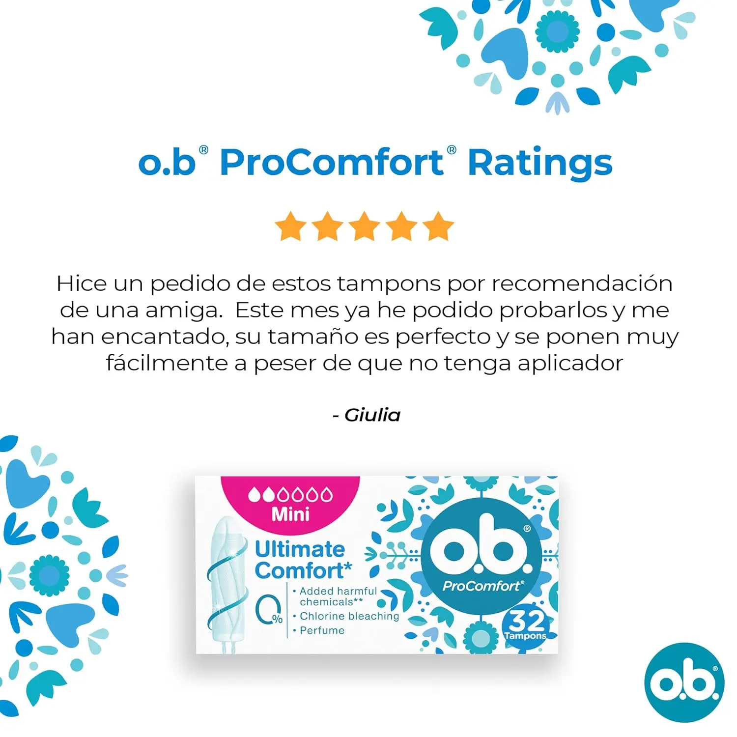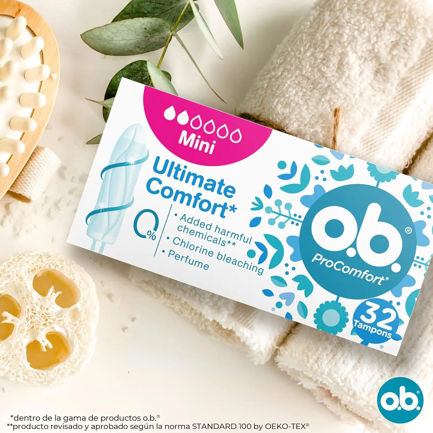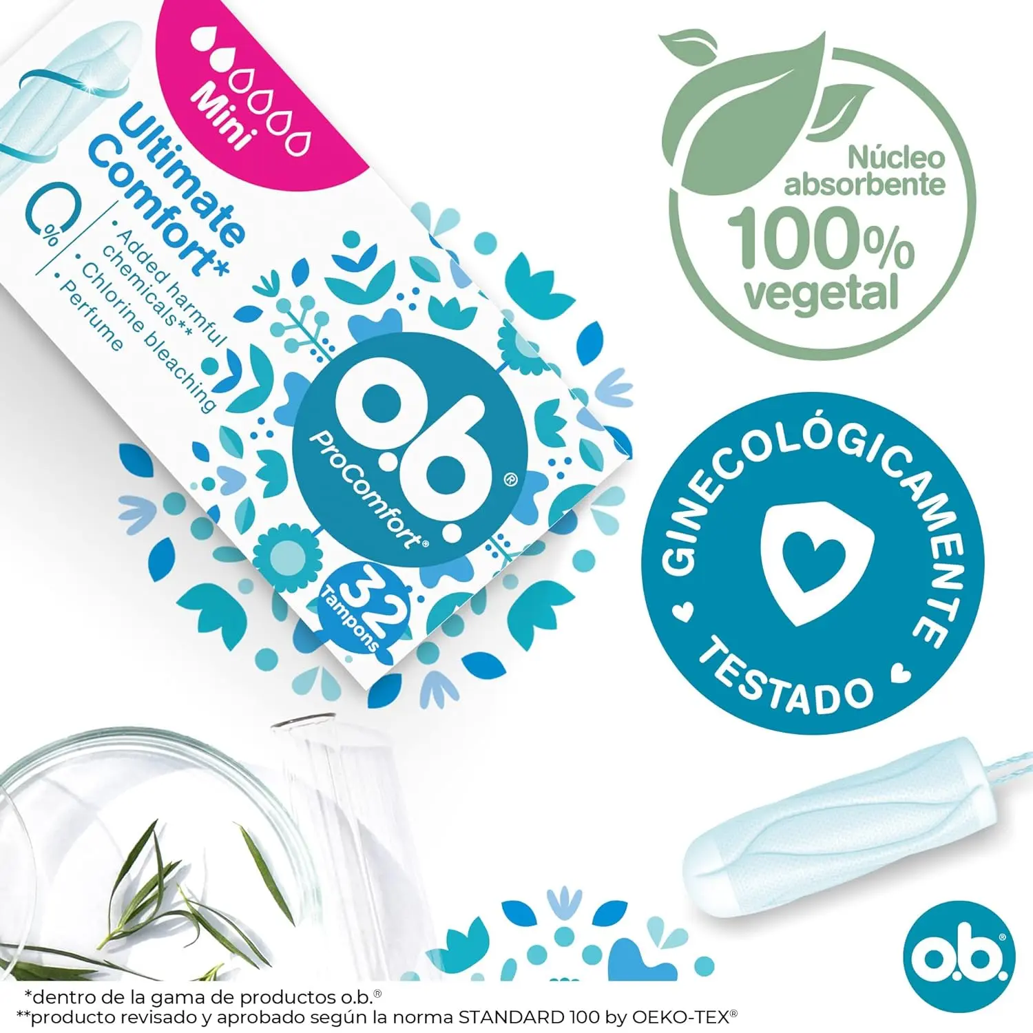 o.b. ProComfort Mini Tampons offer comfort and protection with a SilkTouch cover for easy insertion, DynamicFit technology for a custom fit, and curved grooves for reliable leak prevention.