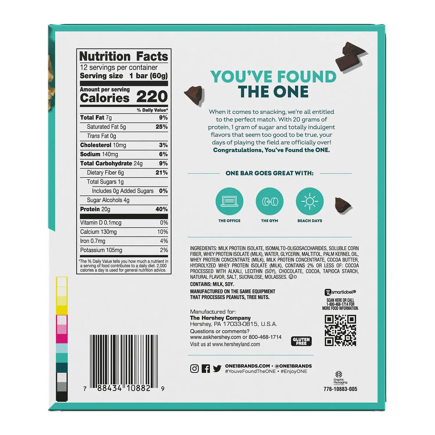 Craving a guilt-free treat that fuels your body? Look no further than ONE Protein Bars! These gluten-free bars are the perfect solution when you need a delicious and nutritious snack. Don’t settle for chalky, tasteless protein bars – life’s too short! Whether you’re facing a stressful day, need a pre-workout boost, or simply want a satisfying snack, ONE Protein Bars deliver. Each bar packs a powerful punch of 20g of protein from whey protein isolate, with only 1g of sugar. Indulge in all the OMG taste without the guilt. We believe that great taste and good health should go hand in hand, which is why we created ONE Protein Bars. These high-protein, low-sugar bars offer an irresistible flavor that will keep you coming back for more. Take the ONE taste challenge and experience the difference! Discover why ONE Protein Bar is the ONE for you. Our Smores flavor brings back sweet camping memories, all while being gluten-free and packed with 20g of protein and just 1g of sugar. It’s a snack that’s truly too good to be true!