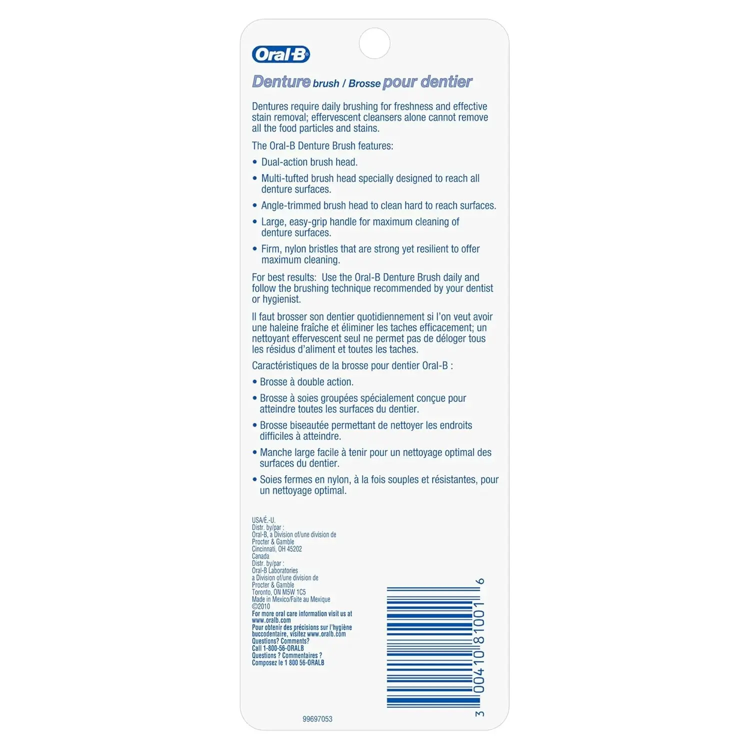 This 3-pack offers exceptional value and ensures you always have a fresh brush on hand. Regular cleaning with the Oral-B Denture Brush helps maintain the integrity of your dentures, prevents the build-up of harmful bacteria, and promotes overall oral health. By incorporating this brush into your daily denture care routine, you can enjoy a confident smile and fresh breath. The durable construction of these brushes ensures long-lasting performance, making them a reliable and essential tool for your denture care needs. Don’t compromise on the cleanliness of your dentures – choose the Oral-B Denture Brush Dual Head 3-Pack for a superior cleaning experience and a healthier, brighter smile. Experience the difference of a truly clean denture. The design helps to easily remove any food or particles from dentures.