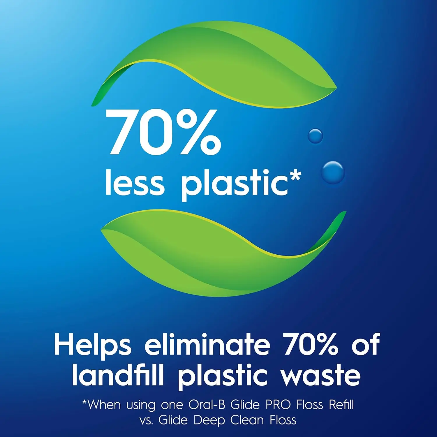 Upgrade your flossing routine with the Oral-B Glide PRO Refillable Floss Starter Kit! This innovative system combines superior cleaning performance with a commitment to sustainability. Experience floss like a pro with dentist-inspired, shred-resistant technology that easily slides even into tight spaces between teeth for a thorough clean. The kit includes one refillable floss dispenser and one 120-meter spool of Oral-B Glide Floss, offering exceptional value. In fact, one PRO refillable floss equals the capacity of three regular floss dispensers. By switching to this refillable system, you can help eliminate 70% of landfill plastic waste*. Make the smart choice for your oral health and the environment with Oral-B Glide PRO Refillable Floss. Enjoy a cleaner, fresher mouth while reducing your plastic footprint. Say goodbye to flimsy floss and hello to professional-level cleaning power that’s gentle on your gums and effective at removing plaque and debris.