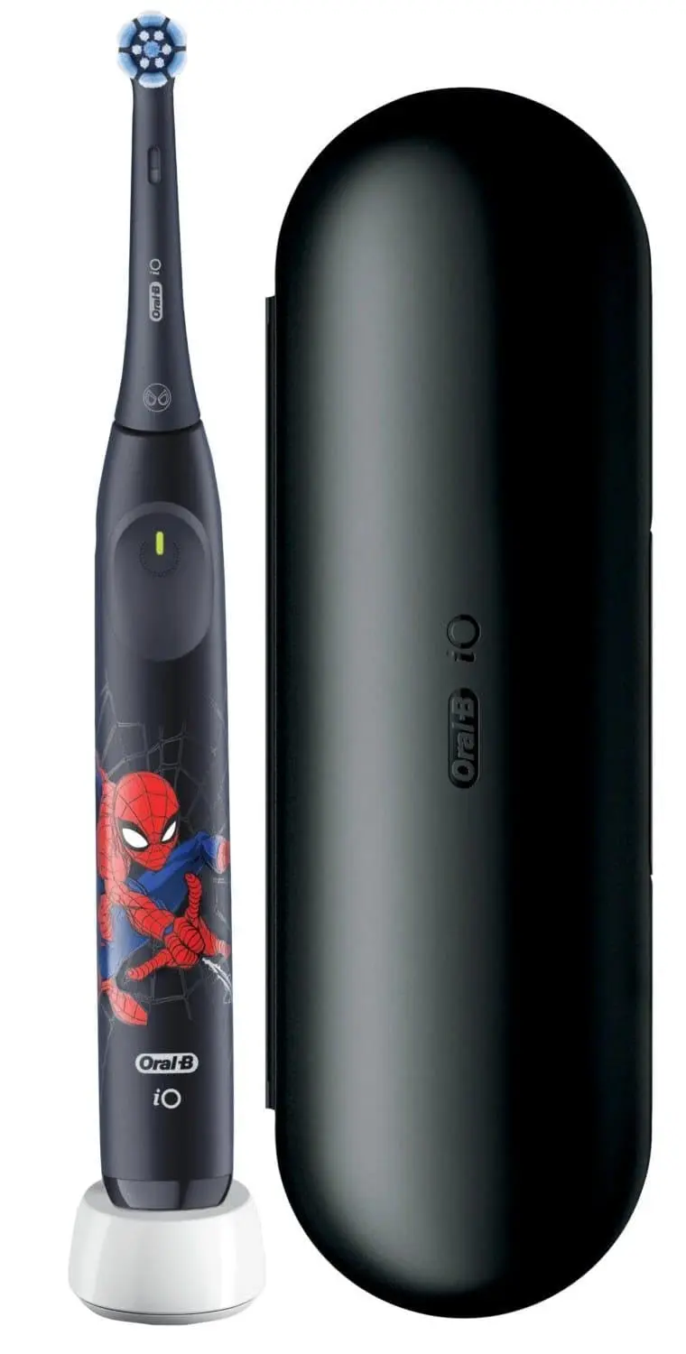 The Oral-B iO Kids Spiderman Electric Toothbrush makes brushing fun & effective! Gentle on gums, strong on plaque. Dentist-approved, includes travel case & charger.