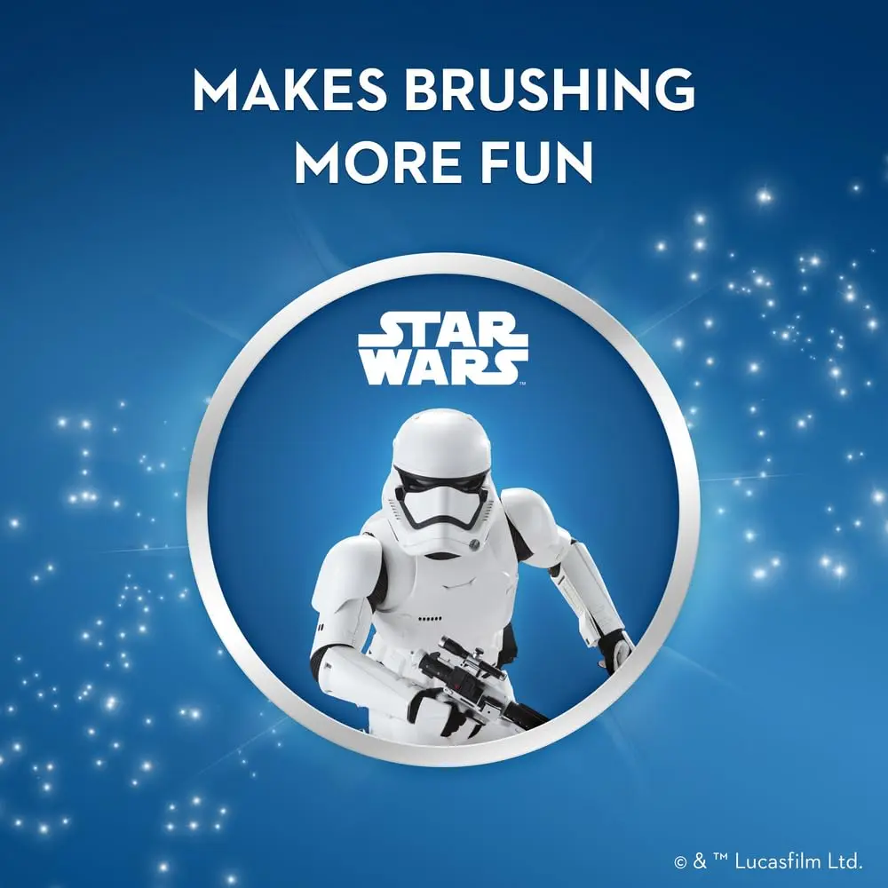 The Oral-B Junior 6+ StarWars Toothbrush is specifically designed to encourage good oral hygiene habits in older children aged 6 to 12. This toothbrush is perfect for kids who are transitioning between a full set of baby teeth and a mix of permanent teeth. The unique CrissCross bristles are angled in opposing directions to effectively remove plaque from hard-to-reach areas and along the gumline, ensuring a thorough and complete clean. The ergonomic brush handle features a non-slip, comfort grip, making it easy for children to hold and maneuver the toothbrush effectively. This promotes independent brushing and helps them develop proper brushing techniques. Let your child discover the galaxy with this StarWars themed brush! The Oral-B Junior toothbrush is a fun and engaging way to make brushing an enjoyable part of their daily routine. Make brushing fun with Star Wars characters! Help your child embrace the power of the force and achieve a healthy and confident smile. Choosing the right toothbrush is an important step in establishing good oral hygiene for children. The Oral-B Junior toothbrush provides a gentle and effective cleaning experience, giving parents peace of mind knowing their child’s teeth are well-cared for. Oral-B is the #1 toothbrush brand used by dentists worldwide, which is a testament to the brand’s commitment to quality and innovation. Colors and prints are subject to availability and may vary from the images shown, adding an element of surprise to each purchase. The Oral-B Junior 6+ StarWars Toothbrush is a reliable choice for parents looking to support their children’s dental health with a trusted and effective product. This toothbrush is designed to grow with your child as they develop their oral hygiene habits. It supports their independence and encourages proper brushing habits for a lifetime of healthy smiles.