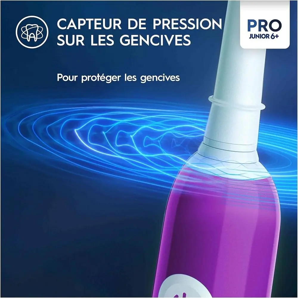 Help your child achieve a healthier and brighter smile with the Oral-B Pro Junior Electric Toothbrush, designed specifically for kids aged 6 and over. This toothbrush makes brushing fun and effective, ensuring they develop good oral hygiene habits from a young age. The ultra-thin and soft bristle tips are gentle on their sensitive gums, providing a comfortable yet thorough cleaning experience. The integrated pressure sensor lights up to alert your child if they’re brushing too hard, protecting their gums from damage. The built-in 2-minute timer encourages them to brush for the dentist-recommended time, dividing the mouth into quadrants for a comprehensive clean.