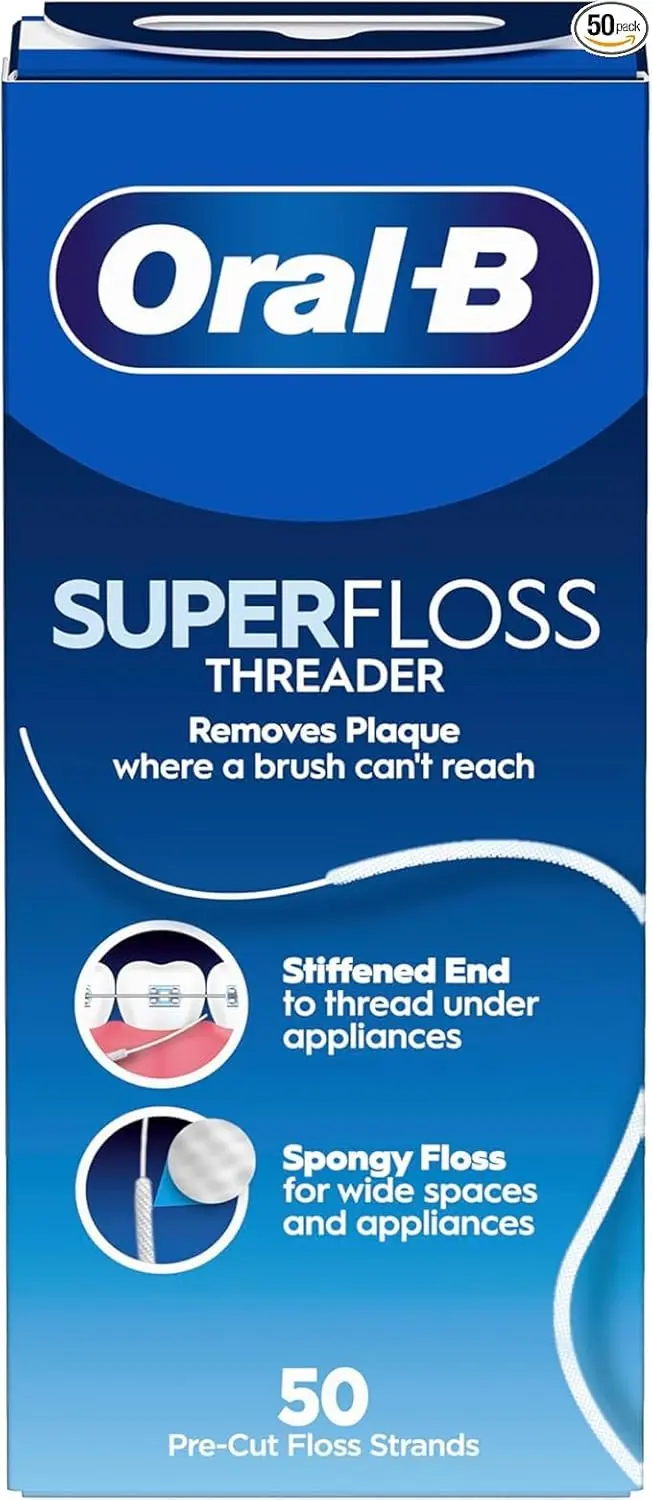 Oral-B Superfloss is your ultimate solution for maintaining optimal oral hygiene, especially if you wear braces, have dental bridges, or experience wide gaps between your teeth. This unique floss is designed to reach and clean areas that regular floss often misses, ensuring a thorough and effective cleaning experience. SuperFloss features three distinct components in one strand: a stiffened end for threading under appliances, a spongy floss section to clean around appliances and in wide spaces, and regular floss for removing plaque beneath the gumline. Using SuperFloss regularly helps prevent gum disease, tooth decay, and bad breath, contributing to a healthier and brighter smile. Its ease of use and exceptional cleaning power make it an essential part of any comprehensive oral care routine. The floss easily maneuvers between teeth and dental work, providing exceptional cleaning. Daily use helps remove plaque and food particles from hard-to-reach areas, preventing tartar buildup and promoting healthy gums. Oral-B SuperFloss offers a simple and effective way to keep your mouth feeling fresh and clean. Integrating this floss into your daily routine will have a significant impact on your oral health. It’s important to floss daily as this makes an immense difference to your gum health and fresh breath, helping to protect against future potential dental problems. This product is designed to handle complex dental cleaning requirements, and is made to ensure that braces, bridges, and gaps between your teeth can be cleaned effectly in the same manner as regular teeth. With Oral-B SuperFloss, you’re not just flossing; you’re investing in a healthier, more confident smile.