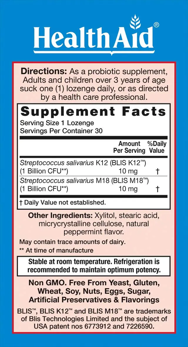 • Active Ingredients: Blis K12, Blis M18