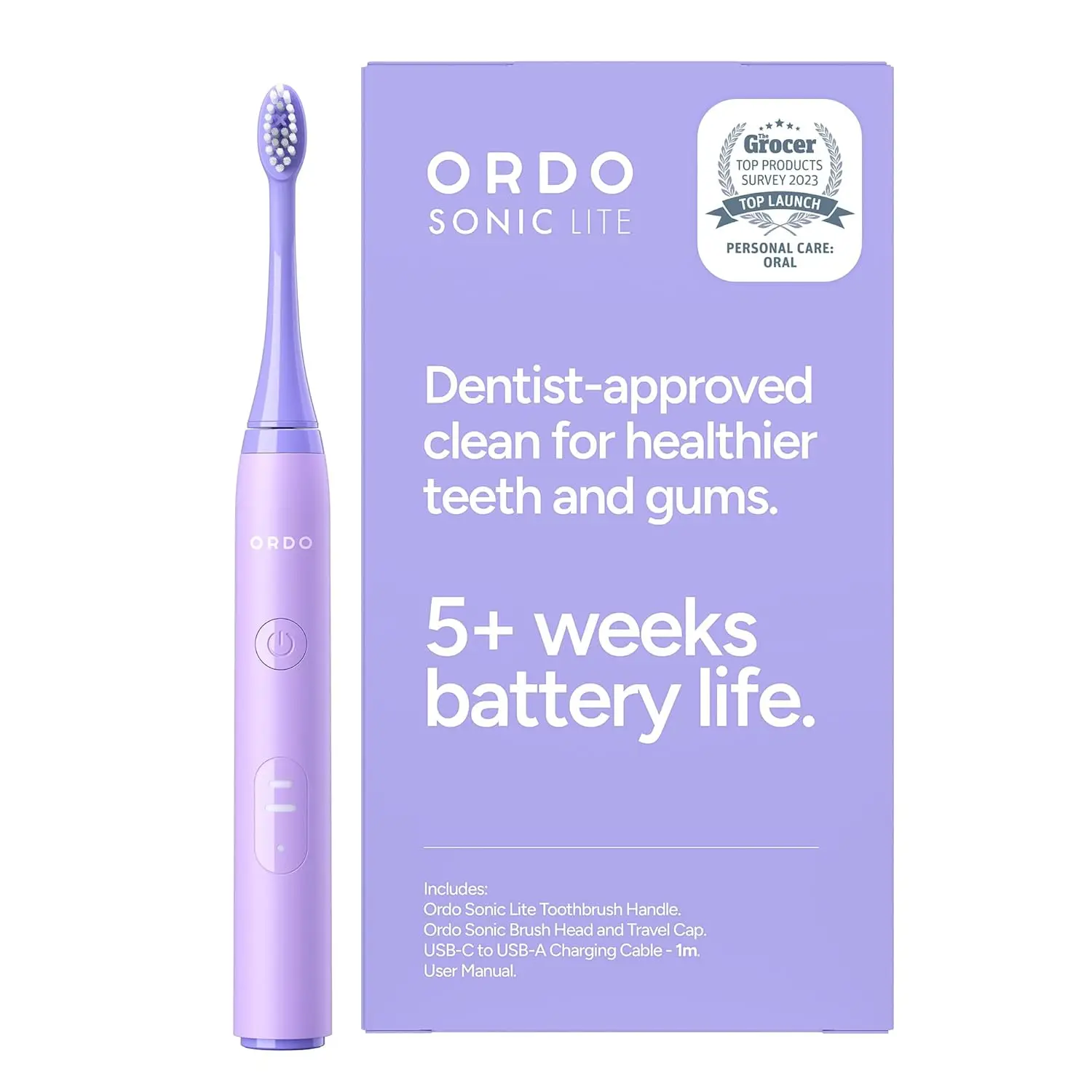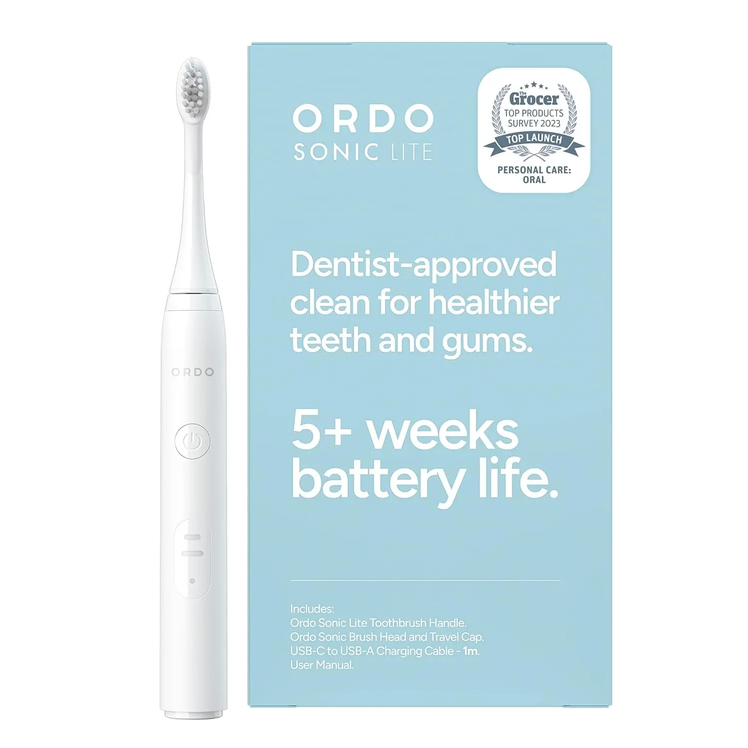 Experience superior oral hygiene with the Ordo Sonic Lite Toothbrush. This electric toothbrush harnesses the power of 35,000 sonic pulses per minute to effectively remove plaque and promote healthier, whiter teeth. Designed for adults, the Ordo Sonic Lite features a long-lasting Lithium-Ion battery, providing over 5 weeks of use on a single charge. Its dual brushing modes – Clean and Sensitive – allow you to personalize your brushing experience based on your individual needs. The built-in 2-minute timer and quad-pacer ensure a thorough and even clean every time, while the waterproof design and USB-C charging make it perfect for travel. Available in 5 stylish colors, the Ordo Sonic Lite combines elegance and practicality, offering premium oral care without the premium price tag. It is also suitable for use with dental work, making it a versatile and smart investment for a brighter, healthier smile. The smart LED indicator keeps you informed about the battery status, preventing any interruptions during your brushing routine. Embrace a smarter way to brush with the Ordo Sonic Lite and experience the difference of sonic technology.