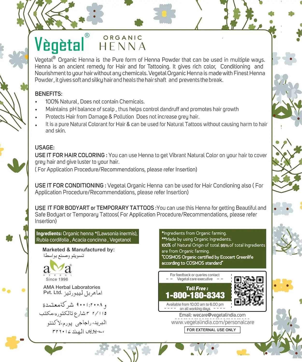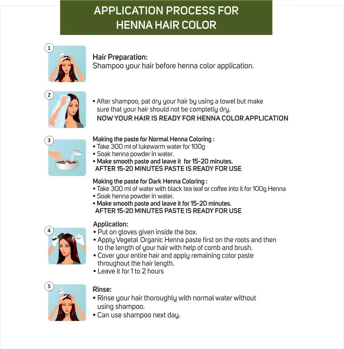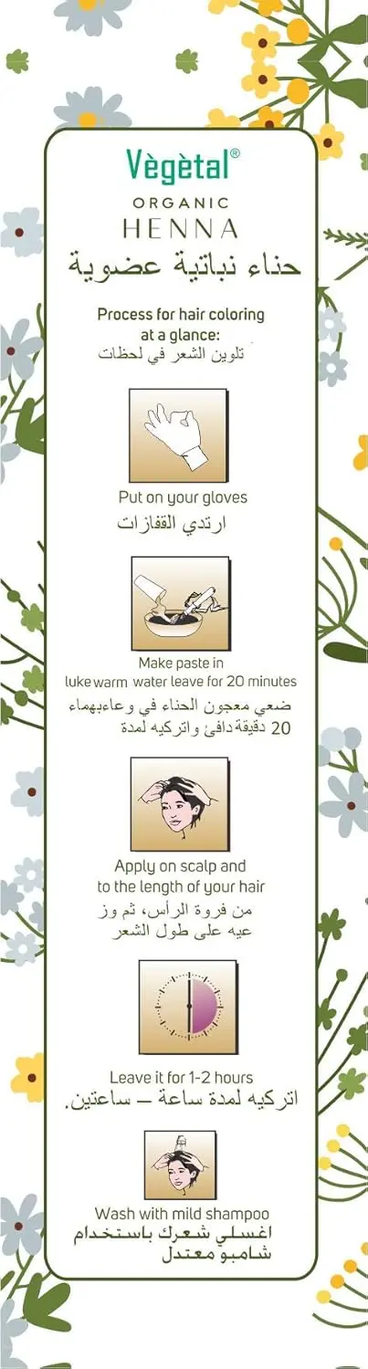 • 100% pure and natural organic henna powder.