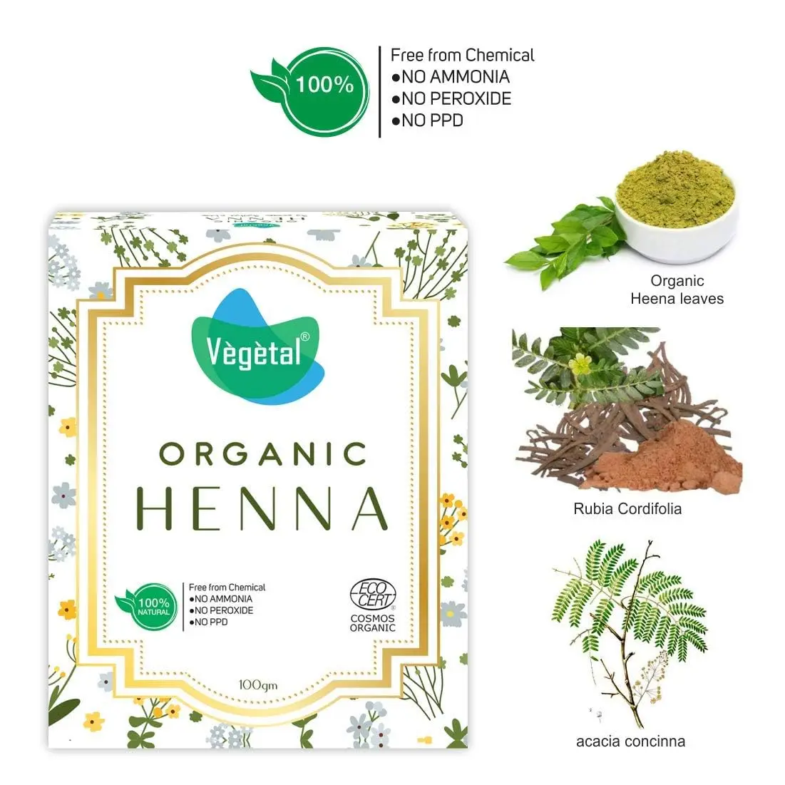 Discover the secret to vibrant, healthy hair with our Vegetal Organic Henna Powder. This isn’t just hair color; it’s a natural treatment that nourishes your hair from root to tip. Made from the finest, purest henna leaves, our organic henna powder effectively covers grey hair, providing rich, long-lasting color without the harsh chemicals found in traditional dyes. Say goodbye to scalp irritation and hello to a healthy, balanced scalp. Our henna helps combat dandruff and other scalp conditions, promoting a flake-free, comfortable experience. More than just a hair dye, our Organic Henna Powder acts as an excellent hair conditioner. It deeply moisturizes each strand, leaving your hair soft, shiny, and manageable. It improves hair growth, reduces hair fall, and strengthens hair from within. Repairing damage and adding volume. Certified by ECOCERT, Paris, Cosmos Organic, you can trust that our henna powder is 100% natural and organic. Free of added chemicals and preservatives, it is safe for all hair types. Experience the difference of a truly natural hair care solution.