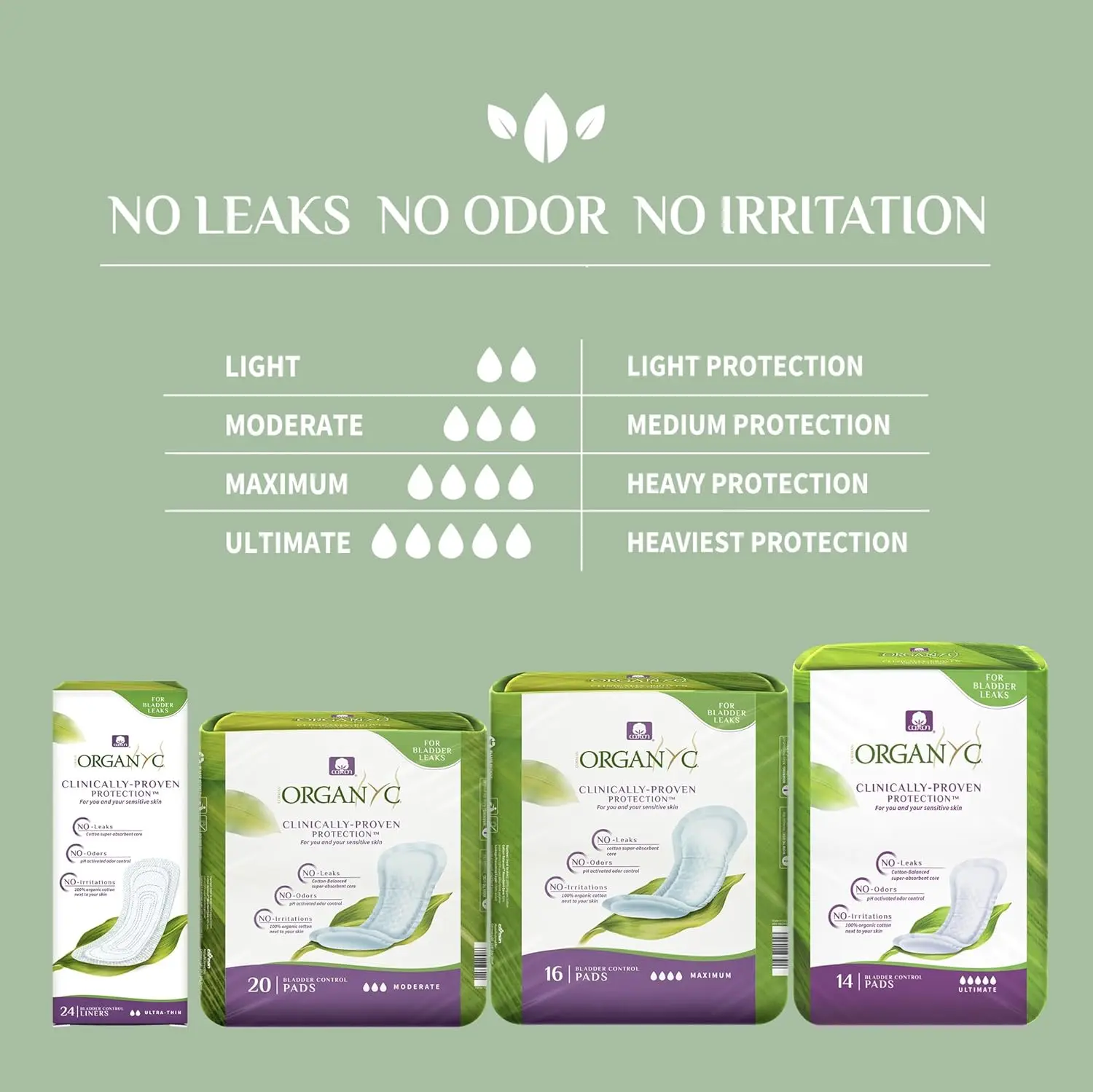 Experience gentle and reliable protection with Organyc Organic Cotton Bladder Leak Pads. Designed for women who value both comfort and efficacy, these pads offer a unique combination of organic materials and advanced absorbent technology. The 100% organic cotton topsheet and core provide a soft, breathable layer against your skin, minimizing the risk of irritation and promoting skin health. Unlike conventional pads that rely on synthetic materials and harsh chemicals, Organyc pads prioritize your well-being with hypoallergenic and biodegradable components. The patented textile technology creates a three-dimensional, cotton-balanced super absorbent core that quickly and effectively absorbs up to 20 times its weight, keeping you dry and confident throughout the day. Free from latex, parabens, perfumes, and dyes, these pads are ideal for women with sensitive skin who seek a natural and comfortable solution for bladder leaks. Maintain your dignity and go about your day with confidence knowing that Organyc pads provide complete wetness, odor, and sensitive skin protection. Organyc neutralizes odors using a unique GOTS-certified PH balancing ingredient, ensuring long-lasting freshness. Choose Organyc Organic Cotton Bladder Leak Pads for a natural, comfortable, and reliable way to manage bladder leaks.