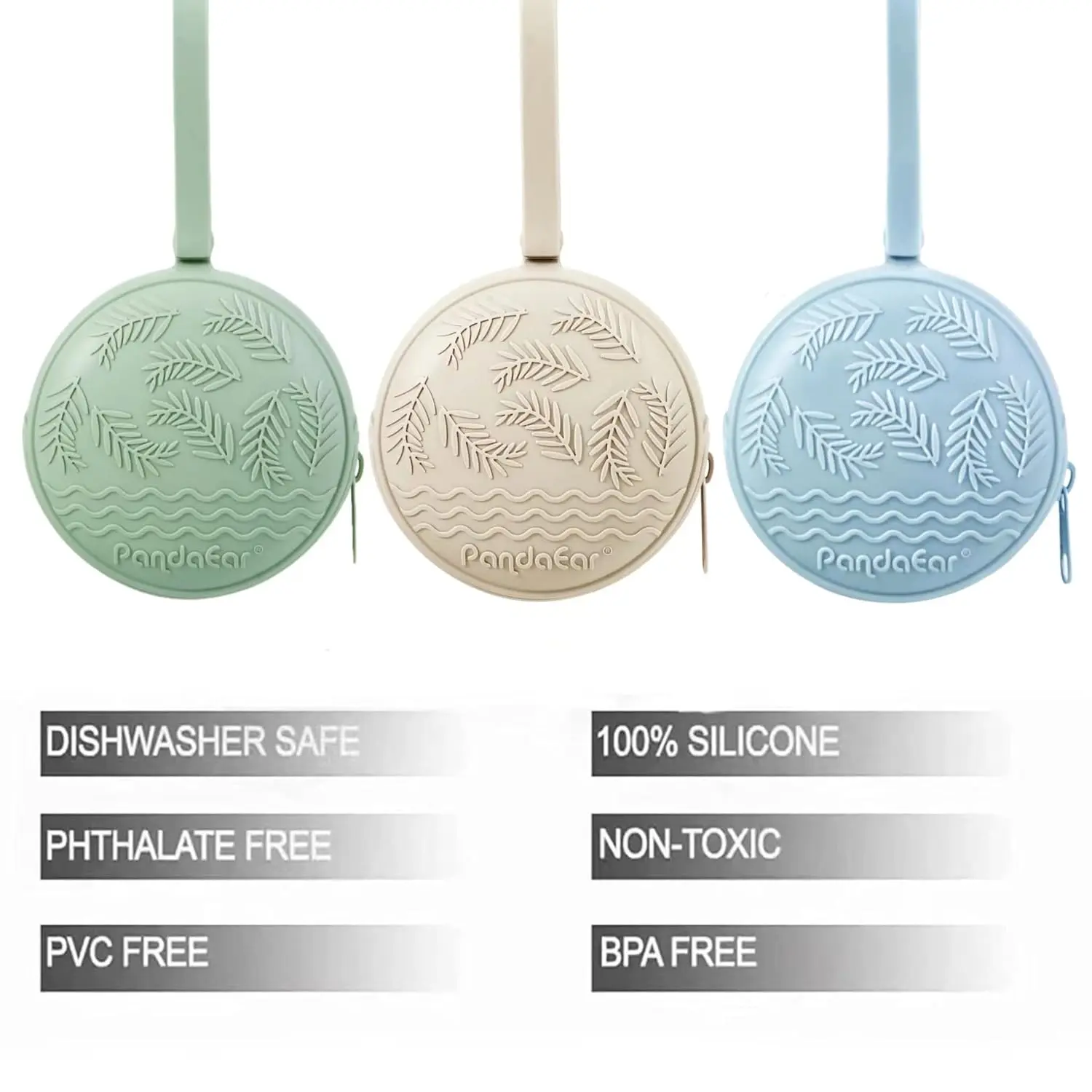 Keep your little one’s pacifiers clean, safe, and always within reach with the PandaEar Pacifier Holder 3-Pack! This set of stylish and convenient silicone cases is designed for on-the-go parents. Each holder is crafted from food-grade silicone, free of BPA and Phthalates, ensuring your baby’s safety. The durable, high-quality zippers provide secure closure while remaining easy to open and close. Cleaning is a breeze – simply rinse or toss it in the dishwasher! The soft silicone strap easily attaches to strollers, diaper bags, car seats, and backpacks, preventing pacifiers from getting lost, dirty, or wet. Each spacious pouch can hold up to two pacifiers, pacifier clips, teether toys, or even small essentials like earbuds, lip balm, or keys. With three gender-neutral colors, you’ll always have a stylish option on hand. The PandaEar Pacifier Holder 3-Pack is the perfect baby shower gift, combining cuteness and practicality for newborns and their parents. Never worry about a lost pacifier again!