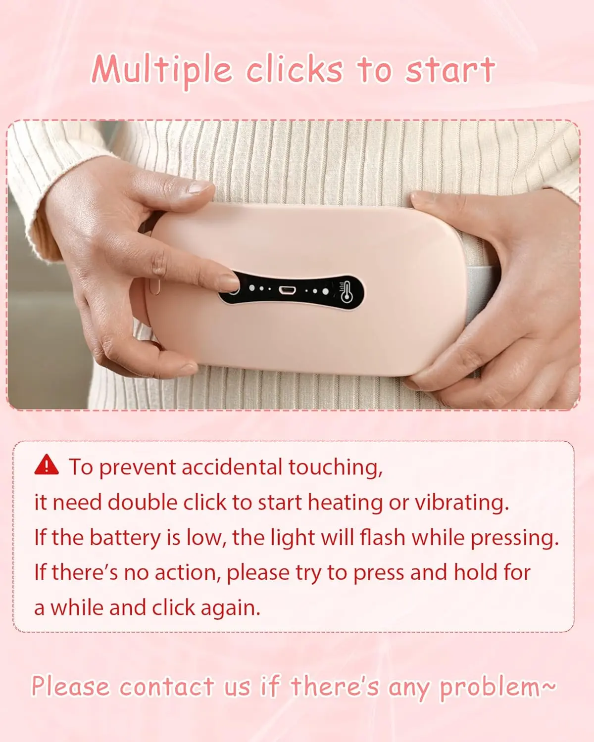 Experience fast and effective pain relief with our innovative Pain Relief Heating Pad! This versatile device combines the power of heat and massage to soothe period cramps, ease muscle soreness, and provide ultimate comfort. Featuring rapid 3-second heating technology, this menstrual heating pad quickly delivers warmth to your abdomen, providing immediate relief from discomfort. The soft, comfortable fabric and thickened ABS construction ensure a pleasant wearing experience. With its rechargeable battery and portable design, it’s the perfect companion for on-the-go relief. Prioritizing your safety, this electric heating belt is equipped with overheating protection and automatically shuts off every 30 minutes. Remember to avoid direct skin contact! Enjoy customized comfort with 3 heating modes, ideal for various needs, including body warming, abdominal pain relief, menstrual heating, and sore waist management. As a dual-function pain relief belt, it also offers 3 massage modes to alleviate sore waist and back pain. Whether you’re resting, reading, driving, or working, this portable and useful item will be your go-to solution for pain relief. Packaged in a delicate gift box, our heating pad makes a thoughtful present for loved ones on any occasion, especially for Mothers day. If you encounter any issues, please don’t hesitate to contact us through Amazon.