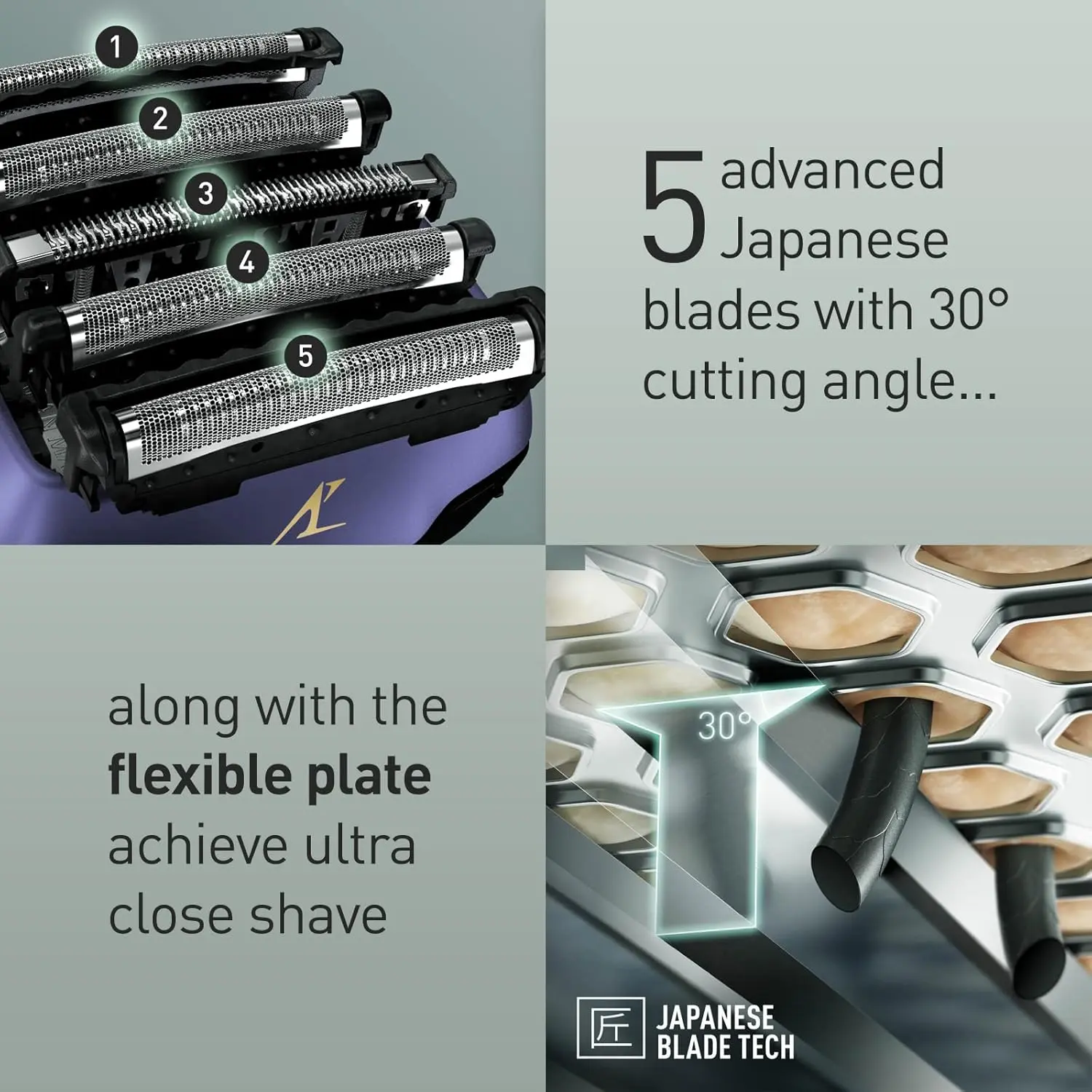• Sharp Japanese steel blades tackle thick stubble, keeping you stubble-free.