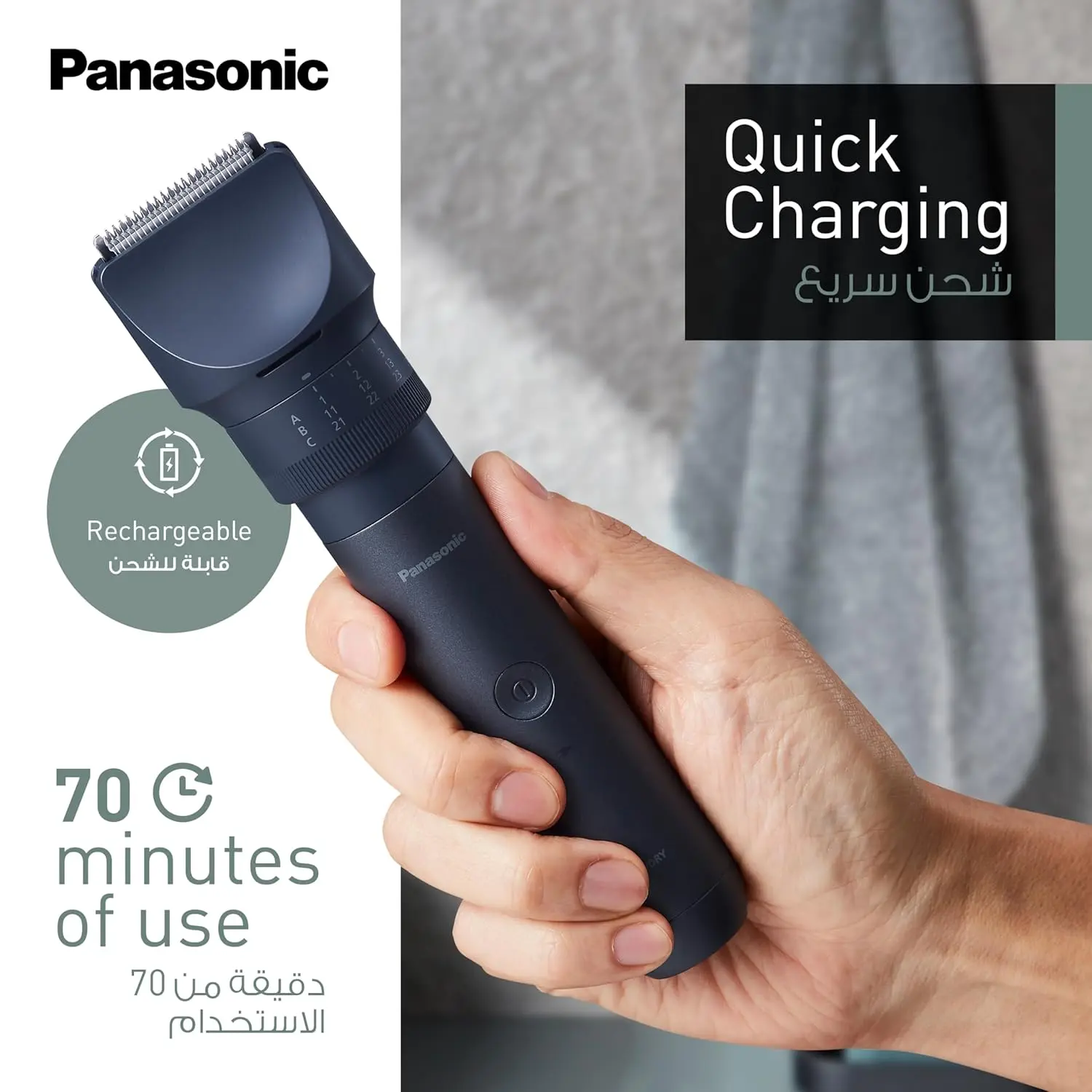Achieve the perfect grooming experience with the Panasonic Beard Hair Body Trimmer. This versatile trimmer offers unparalleled precision and convenience, allowing you to effortlessly maintain your beard, hair, and body hair with professional-quality results. Featuring ultra-sharp Japanese stainless-steel blades, this trimmer delivers a clean, efficient cut every time, minimizing irritation and ensuring a smooth, comfortable grooming session. The advanced design incorporates 58 precise length settings, adjustable in 0.5mm intervals using the intuitive adjustment dial. This exceptional level of customization allows you to achieve your desired hair length with incredible accuracy, whether you prefer a close shave, a neatly trimmed beard, or precisely styled body hair. The long-lasting Li-ion battery provides an impressive 70 minutes of cordless operation on a single 1-hour charge, giving you ample time to complete your grooming routine without interruption. For added versatility, the trimmer includes comb attachments ranging from 1.5mm to 30mm, catering to a wide range of hair lengths and styles. Experience the ultimate in grooming precision and convenience with the Panasonic Beard Hair Body Trimmer. Say goodbye to multiple grooming tools and hello to a single, versatile device that delivers professional-quality results every time. Whether you’re maintaining your beard, tidying up your hair, or grooming your body hair, this trimmer is the perfect solution for achieving your desired look with ease and precision. Enjoy the freedom of cordless operation, the convenience of multiple length settings, and the reliability of Panasonic’s trusted technology. Invest in the Panasonic Beard Hair Body Trimmer and elevate your grooming routine to the next level.