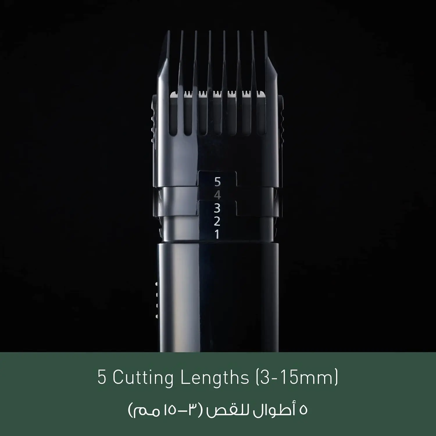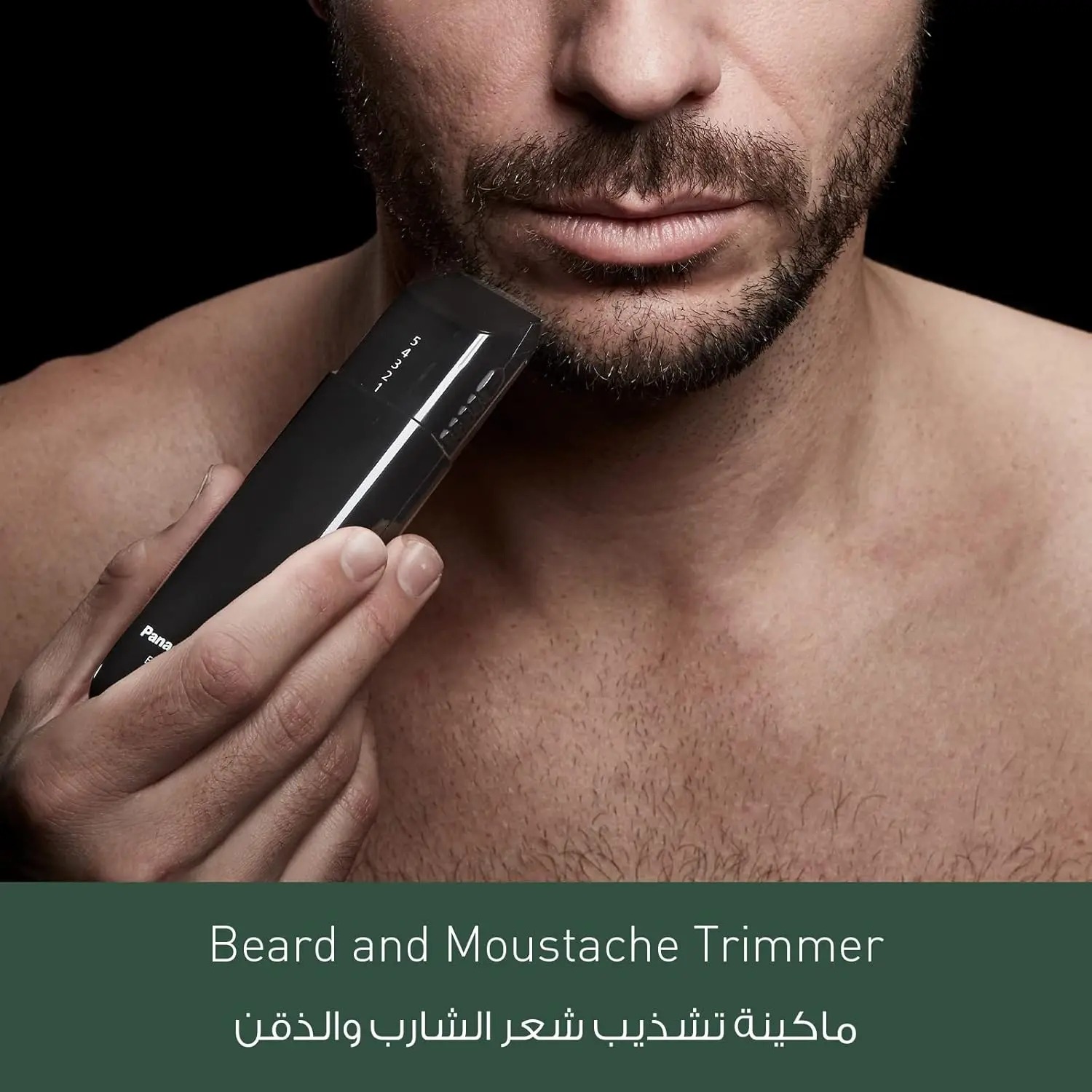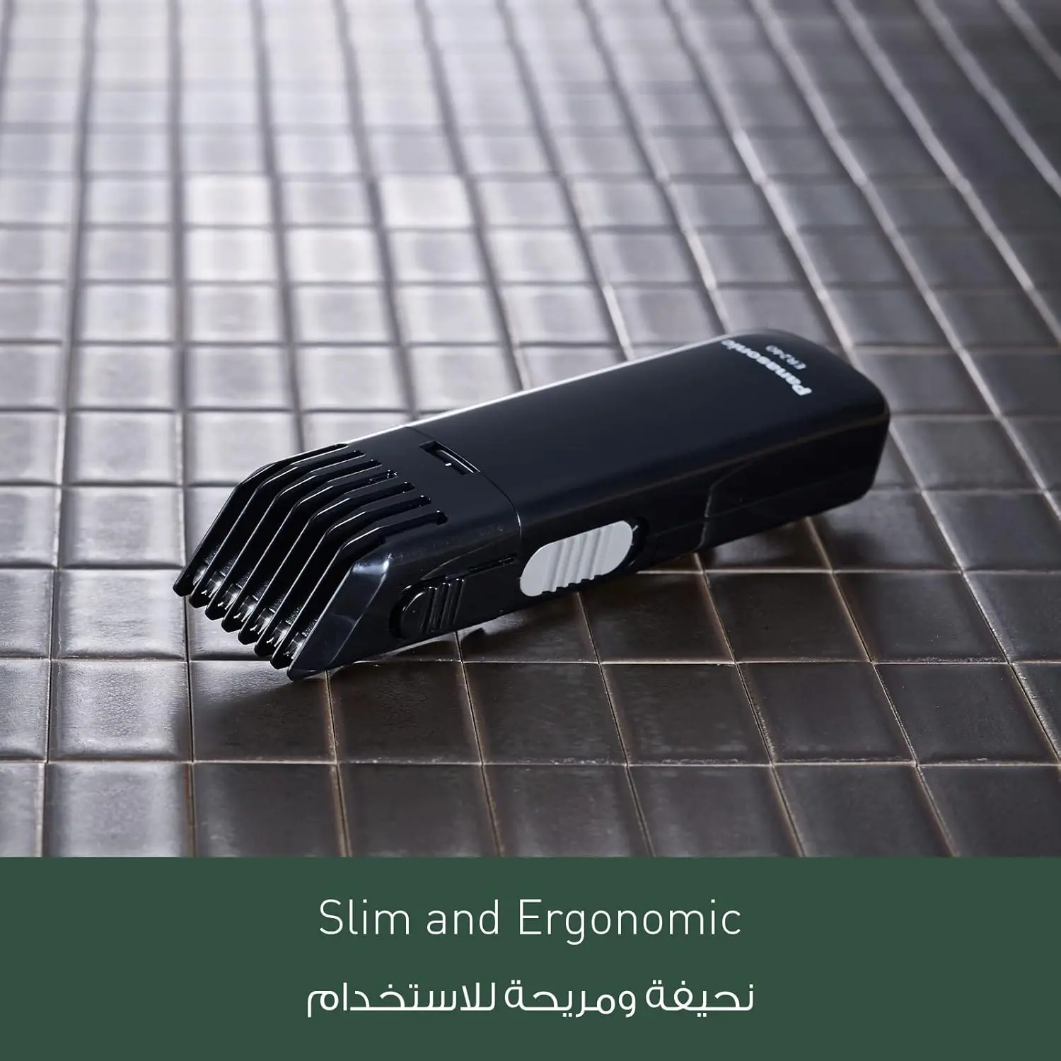 Achieve a perfectly groomed beard and moustache effortlessly with the Panasonic Beard Trimmer. Designed for all beard and moustache types, this trimmer features spring-loaded, high-performance stainless steel blades that deliver a clean and convenient trim every time. With 5 quick-adjust individual trim settings (3-15mm), you can easily personalize your grooming experience and achieve exact, even hair lengths. The slim, ergonomic Panasonic trimmer design ensures maximum ease of use and portability, making it ideal for both home and travel. Enjoy the freedom of battery-operated cordless operation, providing you with flexibility and convenience wherever you go. Get ready to experience the ultimate in beard grooming with the Panasonic Beard Trimmer! Shape your beard, define your style, and maintain a polished look with this essential grooming tool. Experience the difference of precise, comfortable, and convenient beard maintenance.