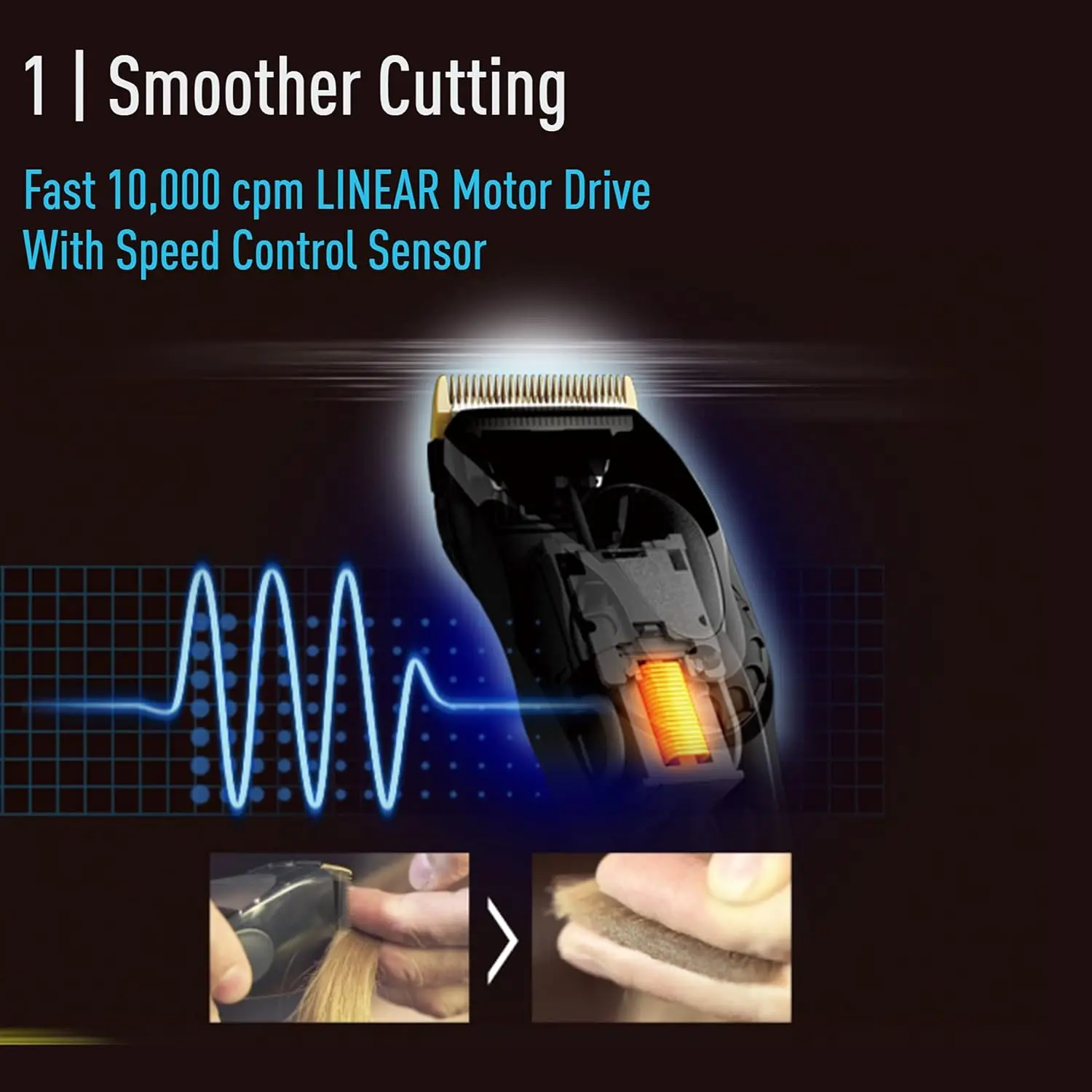 • Advanced sensor technology automatically adjusts blade speed based on hair density.