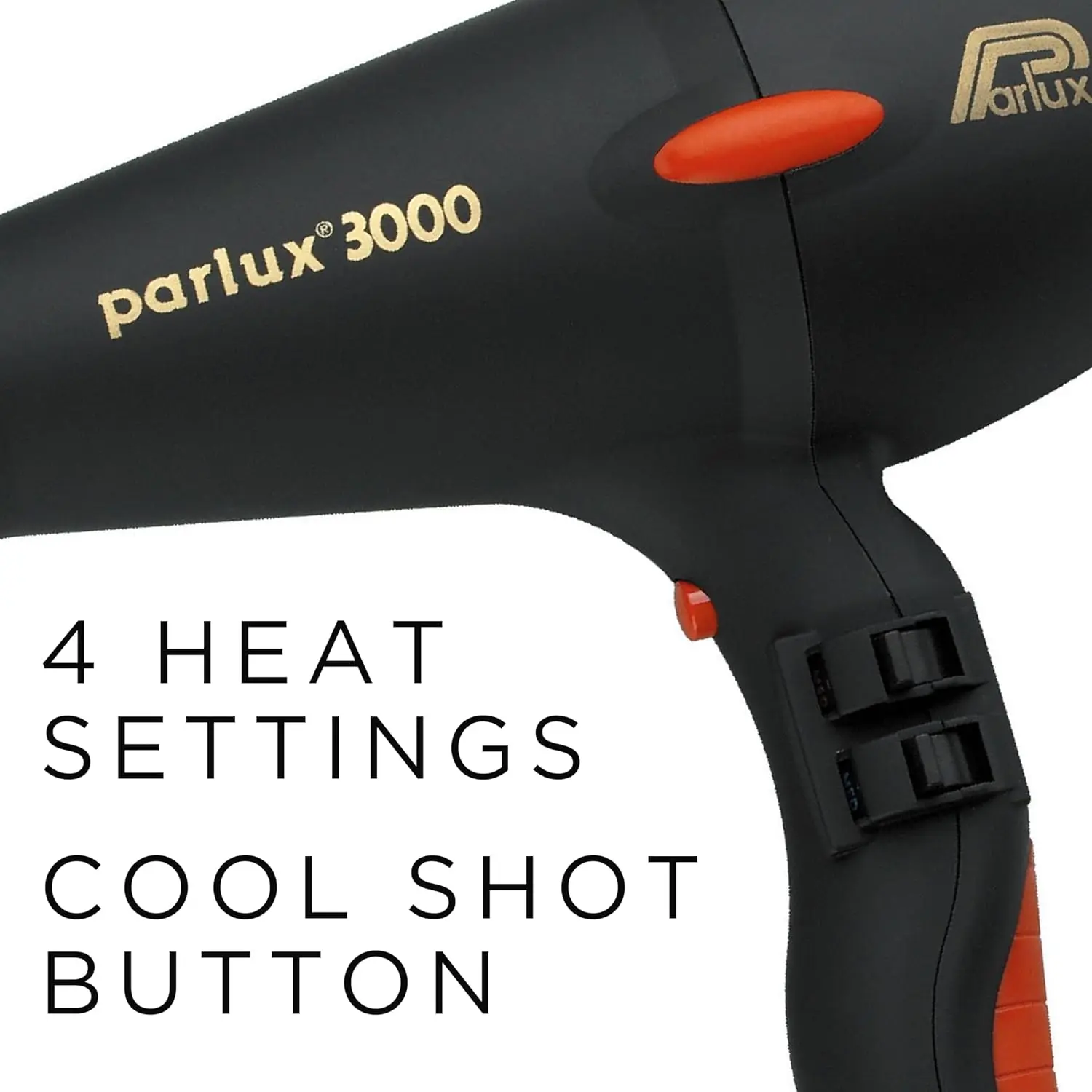 The Parlux 3000 hair dryer is a powerful and reliable styling tool designed for both professional and home use. This mid-range gem in the Parlux collection boasts an 1810-watt motor, delivering a robust airflow of 69 cubic meters per hour for quick and efficient drying. Its ergonomic design and carefully calibrated balance ensure exceptional comfort during styling sessions, making it a pleasure to hold and maneuver. Featuring two-speed settings and three temperature settings, the Parlux 3000 offers complete control to achieve the perfect heat and airflow combination for any hair type. A conveniently located cold shot button allows you to quickly set styles in place, ensuring long-lasting hold. Built to last, the Parlux 3000 features a durable, impact-resistant casing and heavy-duty switches. The rubberized finish provides a secure grip, even during extended use. The professional-length 3-meter cable offers ample freedom of movement, making styling easier than ever. Despite its powerful performance, the Parlux 3000 is remarkably lightweight and compact, weighing only 585 grams. This makes it ideal for home use, salon environments, travel, or on-the-go styling. Parlux has been manufacturing professional hair dryers to the highest standards in Milan for over forty years, and the 3000 embodies the brand’s commitment to quality, performance, and ergonomic design. Experience the difference that Parlux brings to your daily hair routine.