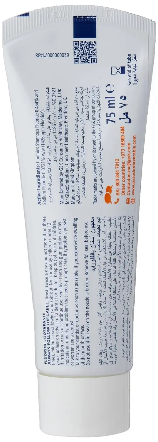 Parodontax Gum, Breath & Sensitivity Toothpaste is specially formulated to tackle the root causes of gum problems and improve overall oral health. Regular use of this fluoride toothpaste helps to prevent gingivitis by targeting plaque buildup along the gum line, the primary culprit behind gum inflammation and bleeding. Its unique formula not only strengthens teeth and freshens breath but also provides relief from sensitivity, making it ideal for those with delicate teeth and gums. By removing plaque and neutralizing harmful bacteria, Parodontax supports healthier gums and reduces the risk of developing more serious periodontal issues. This toothpaste is designed for daily use, offering a comprehensive approach to oral care that addresses gum health, breath freshness, and tooth sensitivity. It’s a proactive step towards maintaining a healthy and confident smile. Fight bacteria that can lead to gum issues and protect sensitive teeth with this expertly crafted toothpaste.