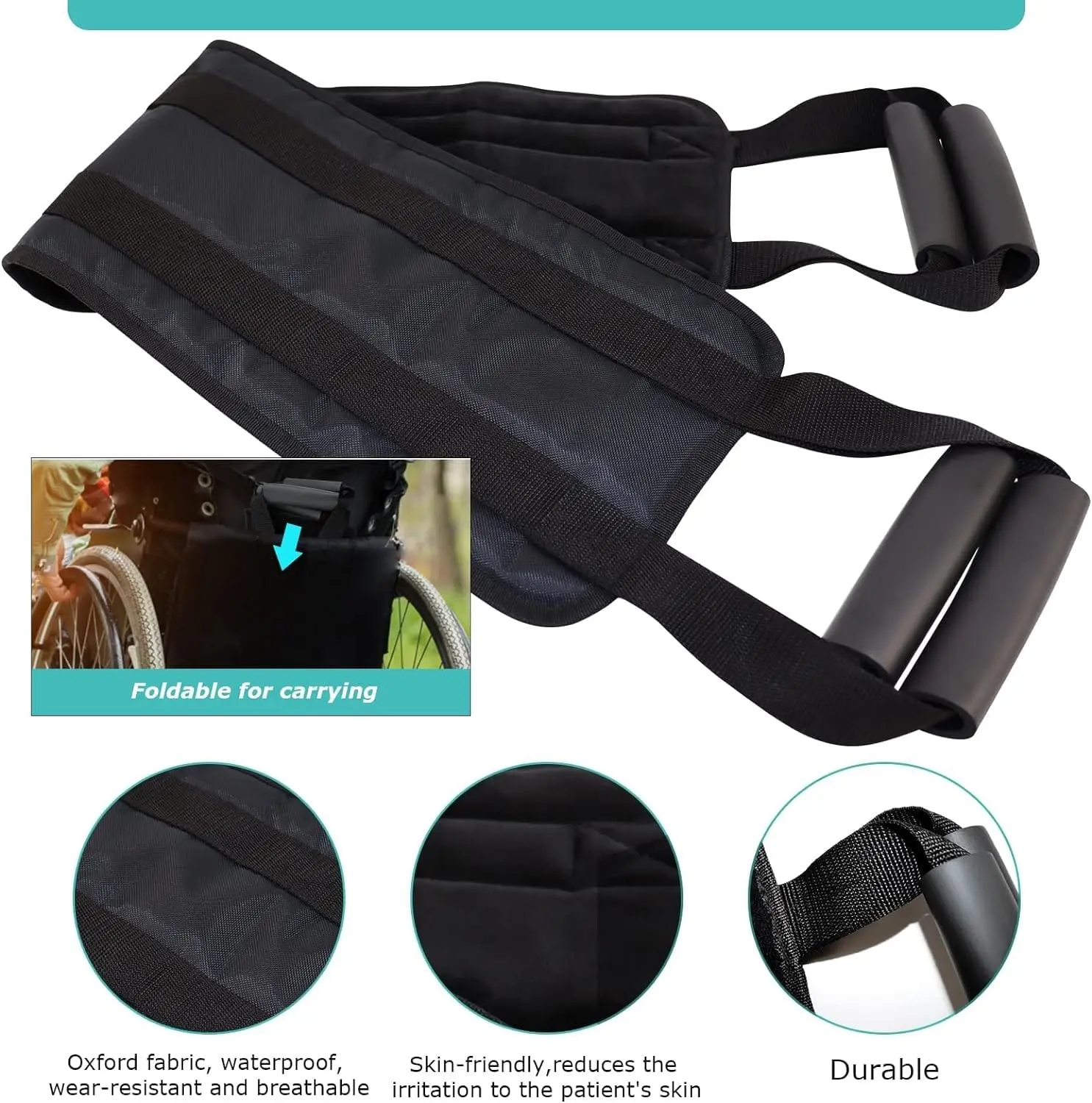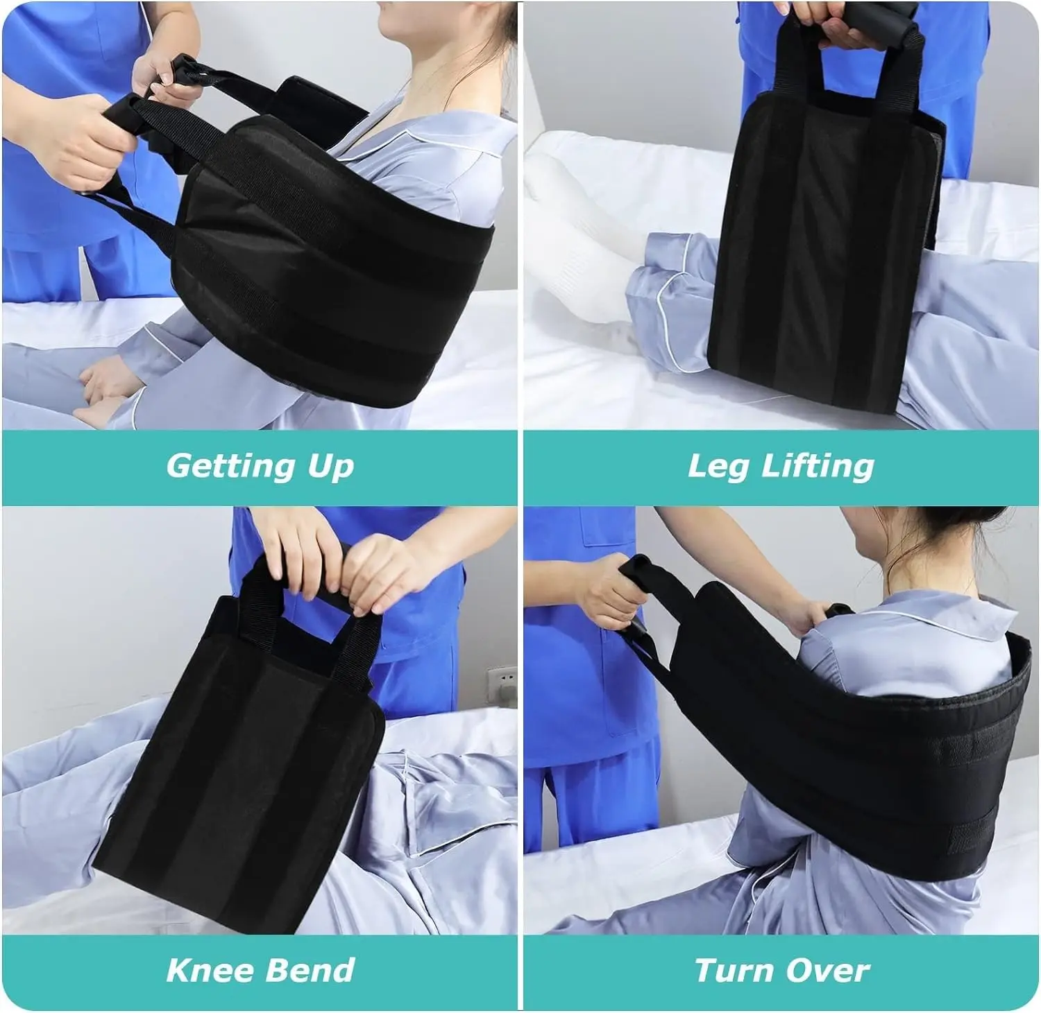 The Patient Transfer Sling Bed Lift Assist Mobility Belt is designed to provide safe and comfortable assistance for individuals with limited mobility. This versatile aid is ideal for elderly individuals, those recovering from surgery, or patients who are bedridden. It assists caregivers in safely moving patients, helping them get up from beds or chairs, turn over in bed, lift their legs, and bend their knees with greater ease. The belt significantly reduces strain on the caregiver’s back and arms, making patient handling safer and more efficient. The durable construction ensures long-lasting use and reliability. The waterproof and breathable materials make it ideal for hygiene. Easy to clean. With its adjustable design, it accommodates a wide range of patient sizes. This transfer belt is a valuable tool for anyone providing care for individuals with mobility challenges. It’s foldable and easy to store, making it convenient for use at home or in healthcare settings. Before using, please inspect the belt carefully to ensure it is free of any defects or damage. Discontinue use immediately if any abnormalities are found to prevent any harm to the patient. The integrated padded sponge layer enhances patient comfort. The construction of high-quality TPU and polyester ensures durability and the ability to withstand repeated use.