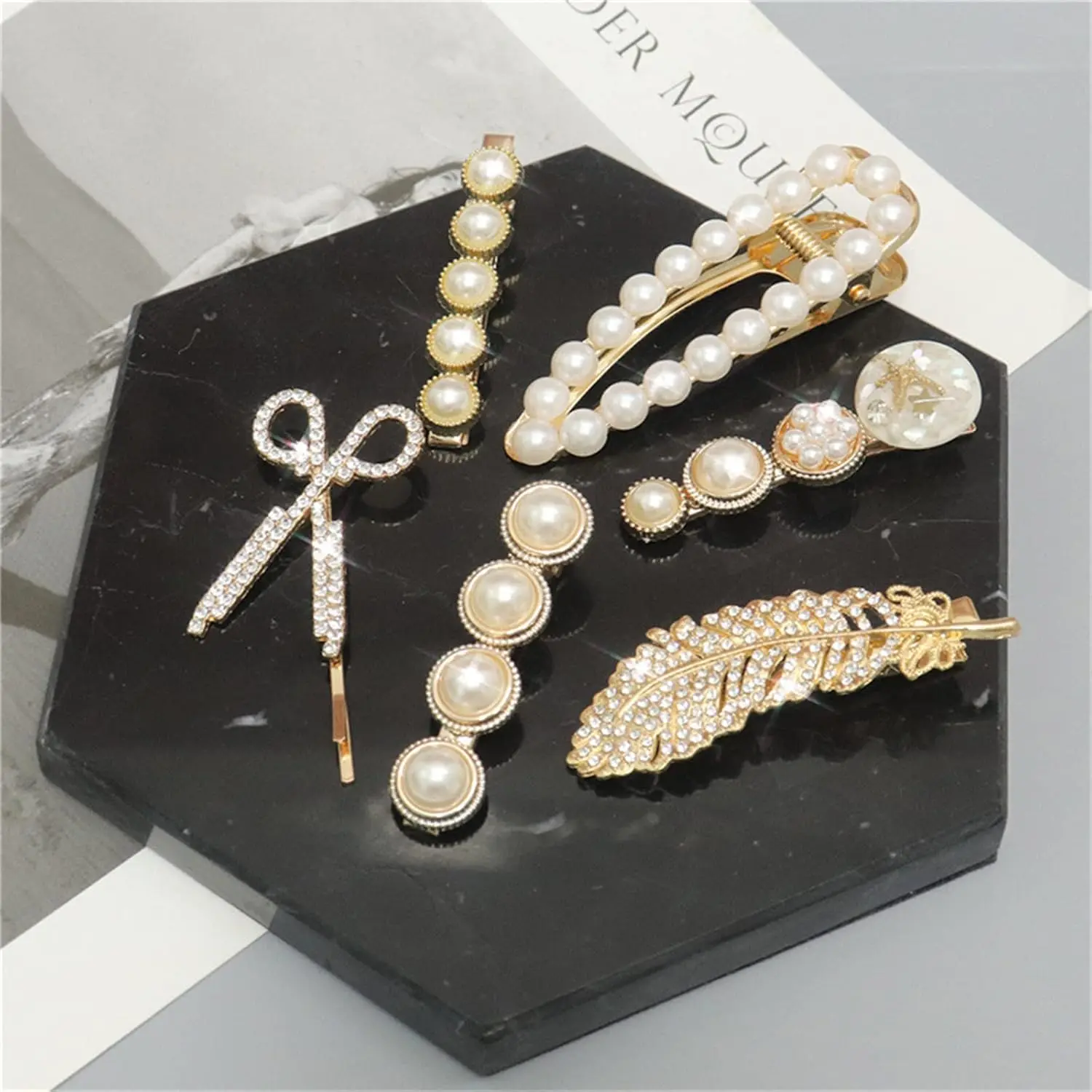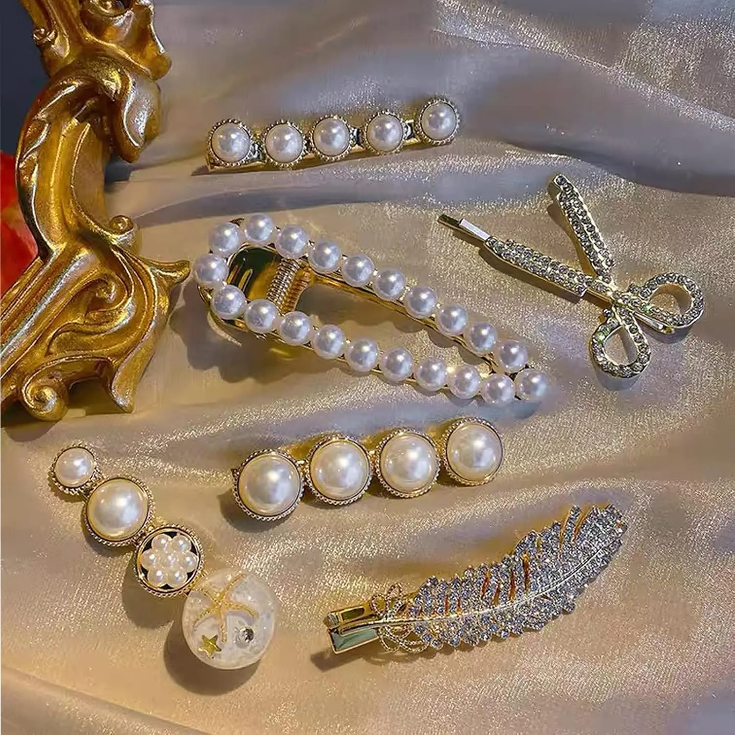Elegant pearl hair clips made with durable metal alloy. Includes 6 stylish designs for versatile use. Perfect for weddings, parties, and everyday wear. A thoughtful gift for women.
