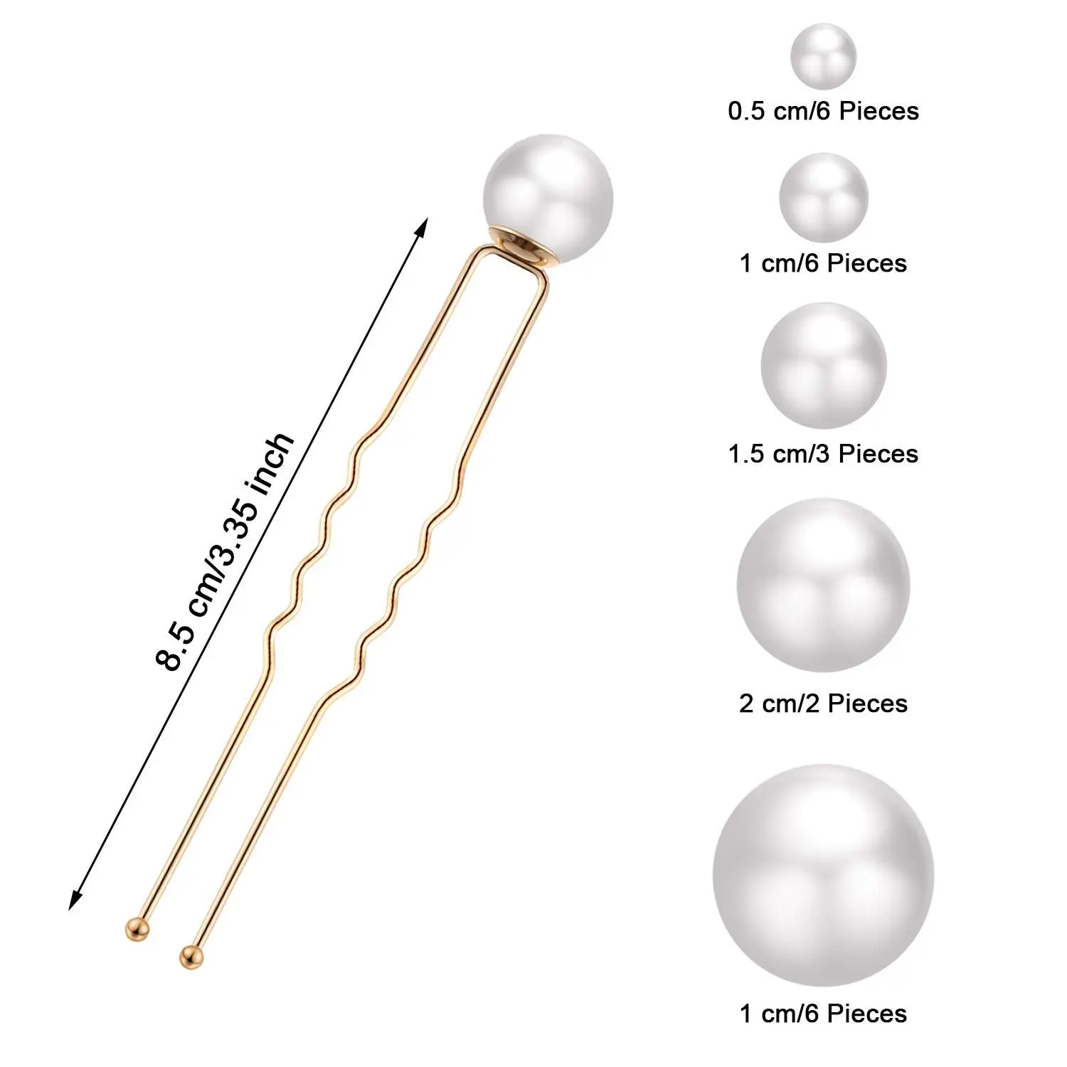 • Includes 18pcs of pearl hairpins in 5 different sizes.