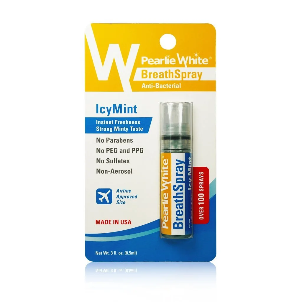 Freshen your breath instantly with Pearlie White Breath Spray in Spear Mint. This compact 8.5ml spray is perfect for on-the-go use, providing a burst of refreshing mint flavor whenever you need it. Eliminate bad breath and boost your confidence with this convenient and effective breath freshener. Its sugar-free formula ensures a guilt-free experience, making it ideal for daily use. Keep one in your purse, pocket, or car for a quick and easy way to maintain fresh breath throughout the day. Pearlie White Breath Spray is your reliable companion for social gatherings, meetings, or any situation where fresh breath is essential. Enjoy the invigorating taste of Spear Mint and experience long-lasting freshness with every spray. Small size, big impact – Pearlie White delivers confidence in a bottle. Experience the crisp, clean taste of Spear Mint and enjoy the long-lasting freshness it provides. Stay confident and ready for anything with this convenient and effective breath solution. It’s the perfect addition to your oral hygiene routine. Don’t let bad breath hold you back – choose Pearlie White for a fresh, confident smile. This breath spray is a must-have for anyone who wants to maintain optimal oral hygiene and feel their best. It’s easy to use, discreet, and incredibly effective, making it the perfect solution for a quick breath refresh anytime, anywhere. Enjoy the peace of mind that comes with knowing your breath is always fresh and clean.