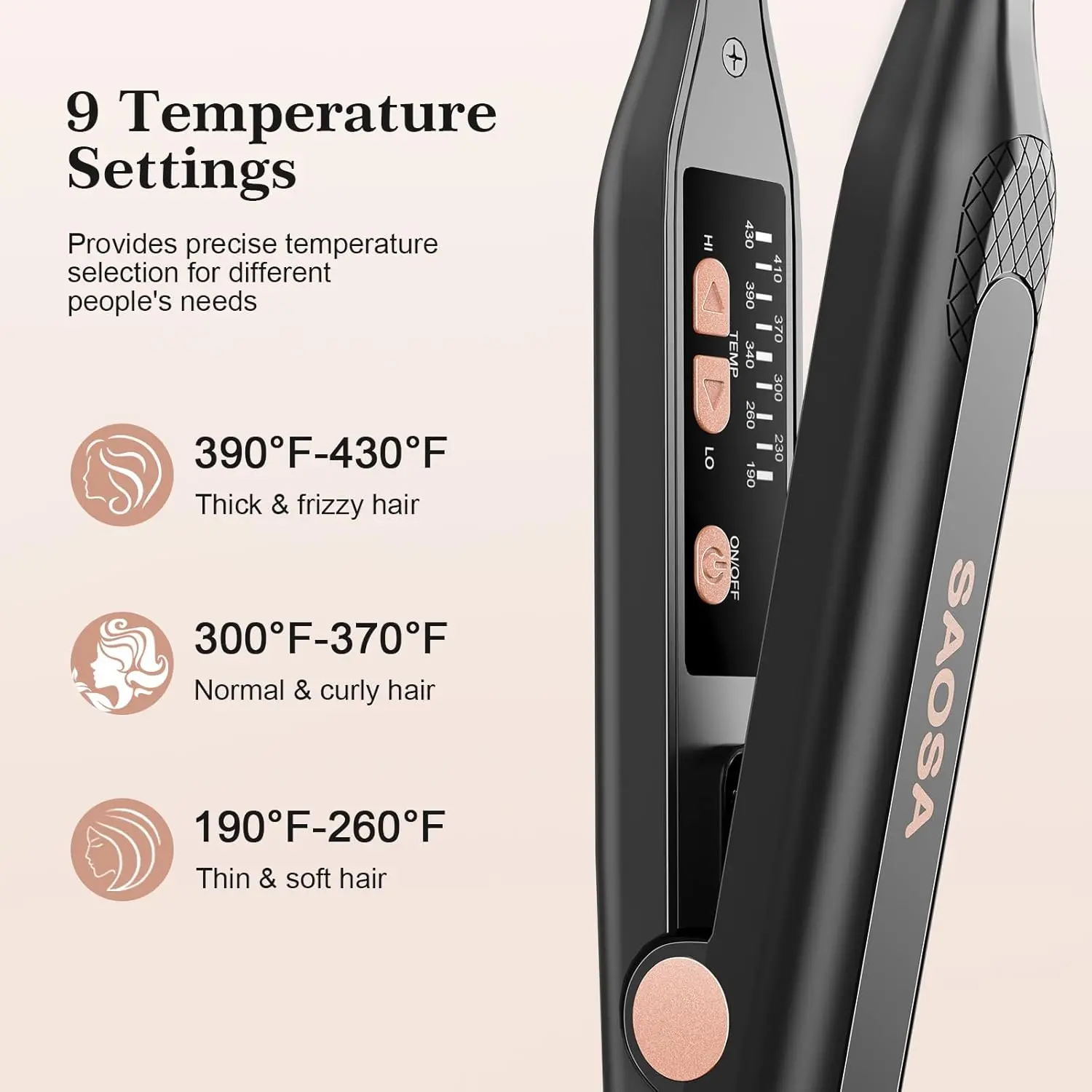 • Wide temperature range: 190℉ to 430℉.