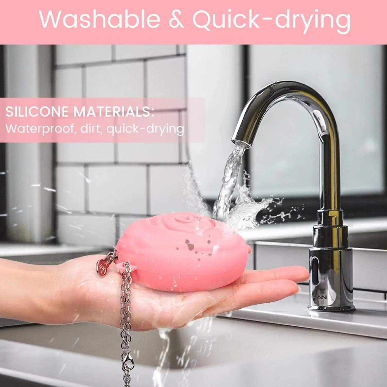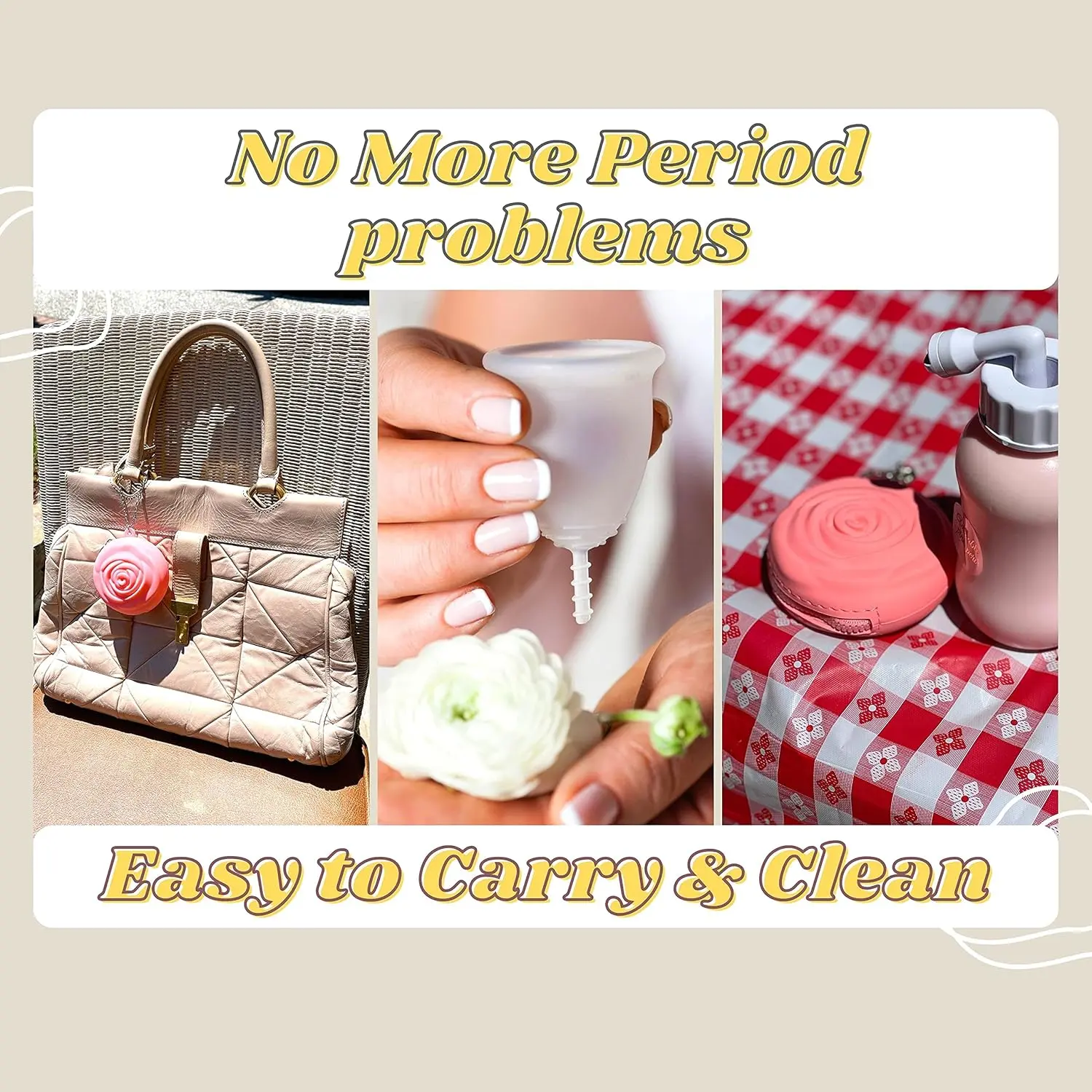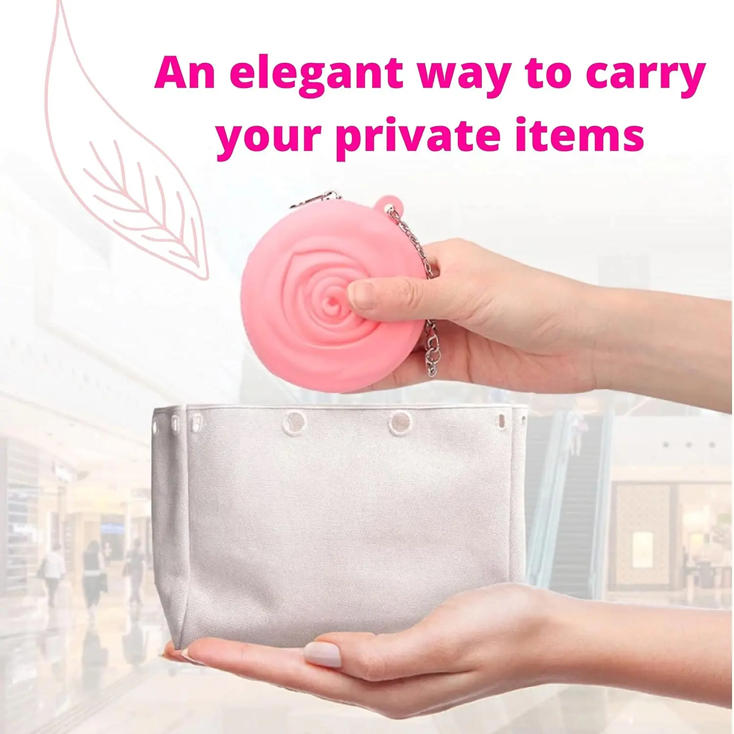 Carry your menstrual cup discreetly and hygienically with the Peri Cup Storage Bag. This adorable pink silicone case is the perfect way to transport your cup when you’re on the go. Made from high-quality, soft silicone, it’s durable, waterproof, and easy to clean. The compact size (3.5 x 3.5 x 1.5 inches) fits most menstrual cup sizes, and it’s also versatile enough to hold other small items you might need. The attached metal chain allows you to clip it to your bag, backpack, or keys for convenient access. Say goodbye to bulky packaging and hello to a stylish and practical solution for menstrual cup storage. Its waterproof and quick-drying properties makes sure that you can clean and pack it easily. Show off the adorable pink peri cup storage bag. Peri = you are Perfect + Energetic + Respect + Intuitive. Peri means (in Persian mythology) a mythical superhuman being, a good or graceful genie or fairy. Adorable Pink Peri is a San Francisco-based brand with a mission of designing the most reliable, durable, efficient, and effortless products with less impact on the environment for all women.
