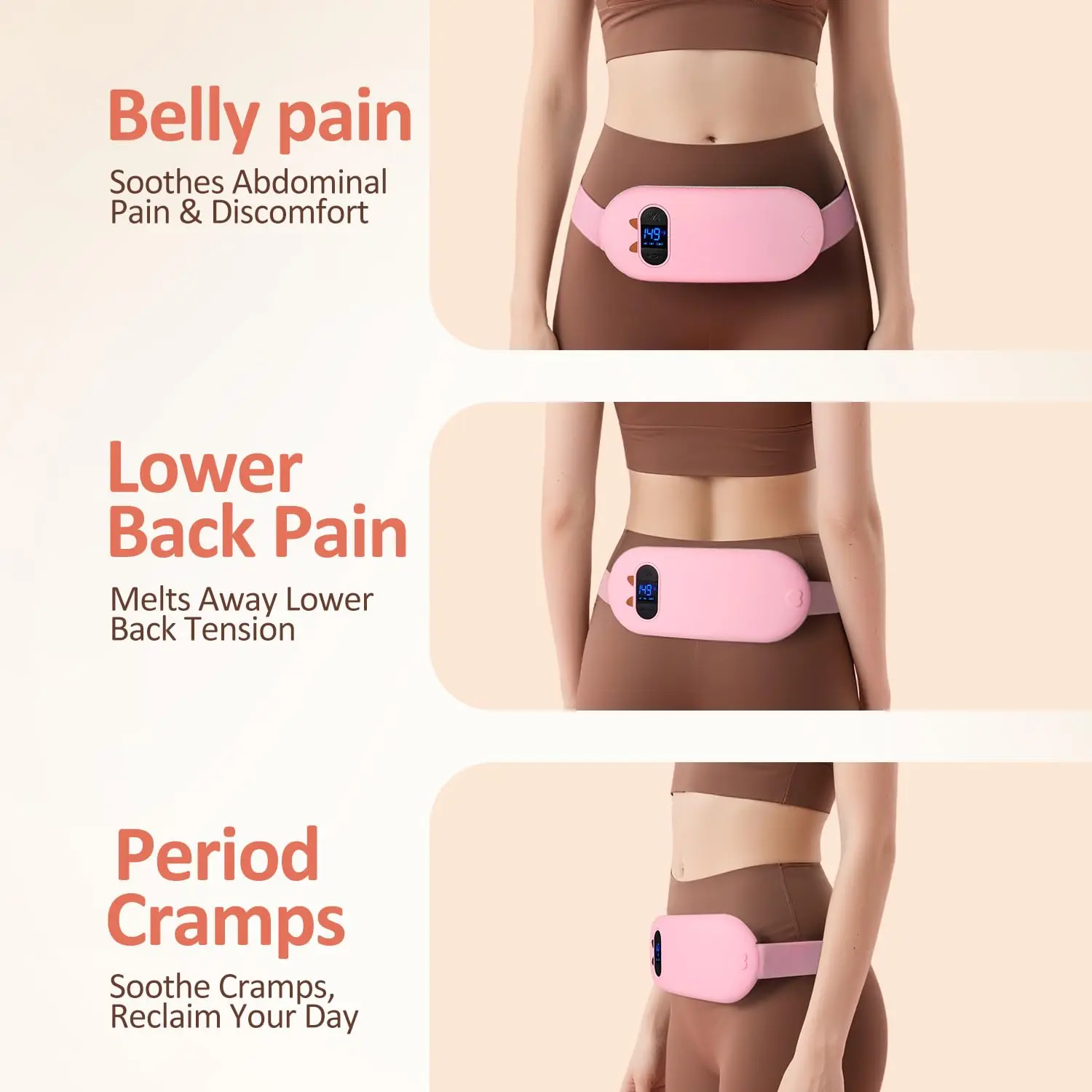 • Effectively relieves period cramps, back pain, and waist pain.