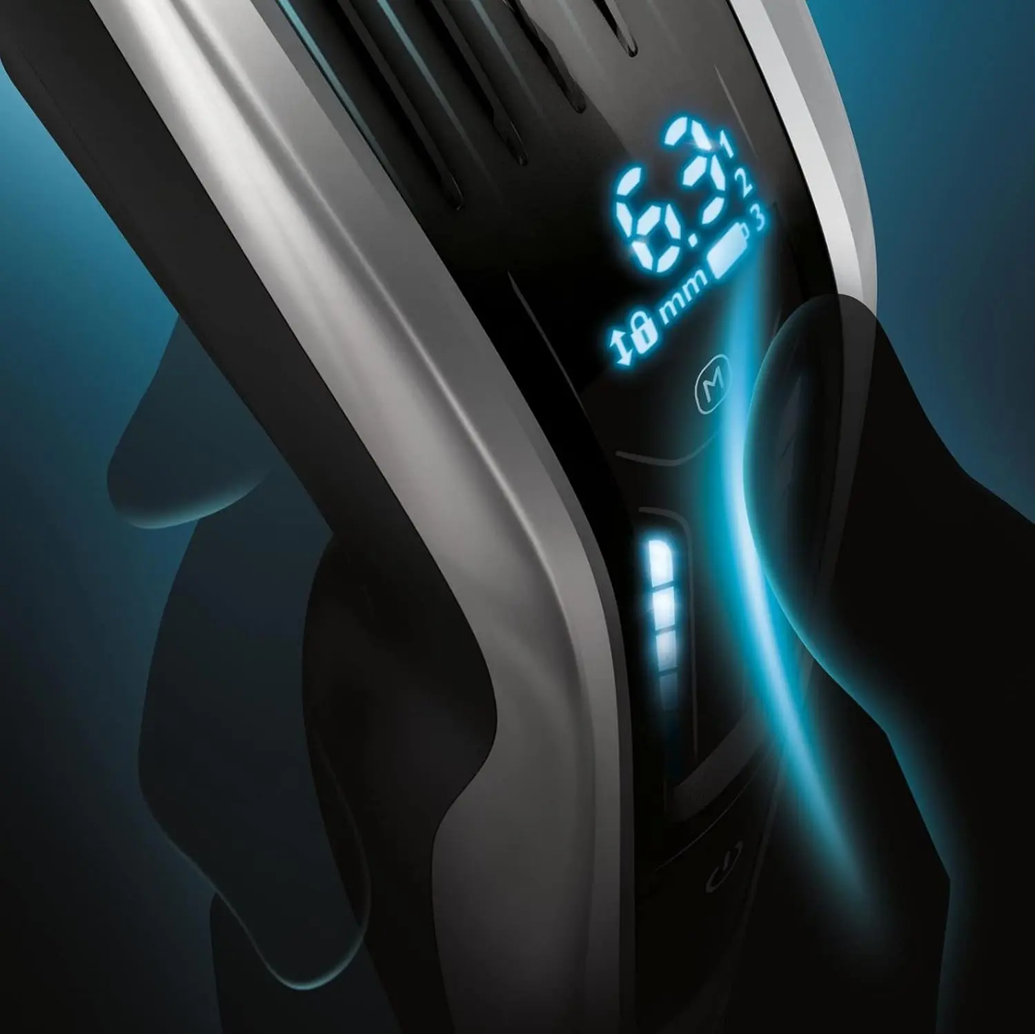 Experience ultimate precision and control with the Philips 9000 Hair Clipper. This innovative hair trimmer features digital touch control, offering precise feedback and an astounding 400 cutting lengths adjustable in incredibly fine 0.1 mm increments. Achieve the perfect haircut every time with unparalleled accuracy. The touch control interface allows you to easily select and lock in your desired length, ensuring consistent results. With a range of 1 to 42 mm, adjustable in 0.1mm steps, and 3 comb attachments (1-7 mm, 7-24 mm, and 24-42 mm) along with the option to use it without a comb at 0.5 mm, you have complete versatility to create any style you desire. The powerful battery charges in just one hour, providing up to 120 minutes of cordless operating time, giving you the freedom to cut your hair anywhere. The included charging stand ensures your clipper is always ready for use. Plus, the included travel pouch makes it easy to take your Philips 9000 Hair Clipper with you wherever you go. The intuitive user manual provides all the information you need to get the most out of your new hair trimmer (English language not guaranteed). Get ready to experience a new level of control and precision with the Philips 9000. Say goodbye to uneven cuts and hello to professional-quality results from the comfort of your own home.