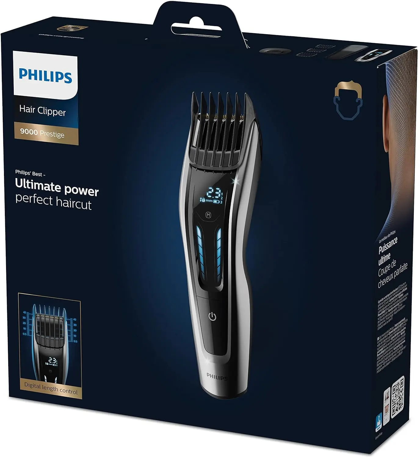 Experience ultimate precision with the Philips 9000 Hair Clipper! 400 lengths, touch control, 3 combs, 120 min runtime, charging stand & travel pouch included.