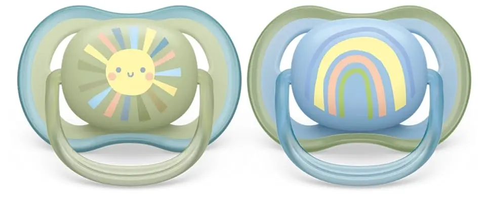 Give your baby’s skin the comfort it deserves with the Philips Avent Ultra Air Pacifier. Designed with extra-large air holes, this lightweight, breathable dummy promotes airflow, keeping your baby’s skin soft and dry. The included travel case doubles as a sterilizer, offering a quick and easy cleaning solution – simply add water and microwave. The textured silicone nipple boasts a remarkable 98% acceptance rate among babies, according to moms. The symmetrical shape respects your baby’s oral development, supporting the natural formation of their palate, teeth, and gums. This set includes two BPA-free Philips Avent Ultra Air Pacifiers and one Ultra Air Pacifier Travel Case, perfect for children aged 0-6 months. The pacifiers are dishwasher safe, easy to clean, and feature a safety ring handle for added convenience. Choose the Philips Avent Ultra Air Pacifier for a comfortable and hygienic soothing solution that supports your baby’s well-being. It’s more than just a pacifier; it’s peace of mind for you and comfort for your little one. It is important to keep babies happy as well as safe, that is why the Philips Avent Ultra Air Pacifier is the perfect product for your child.