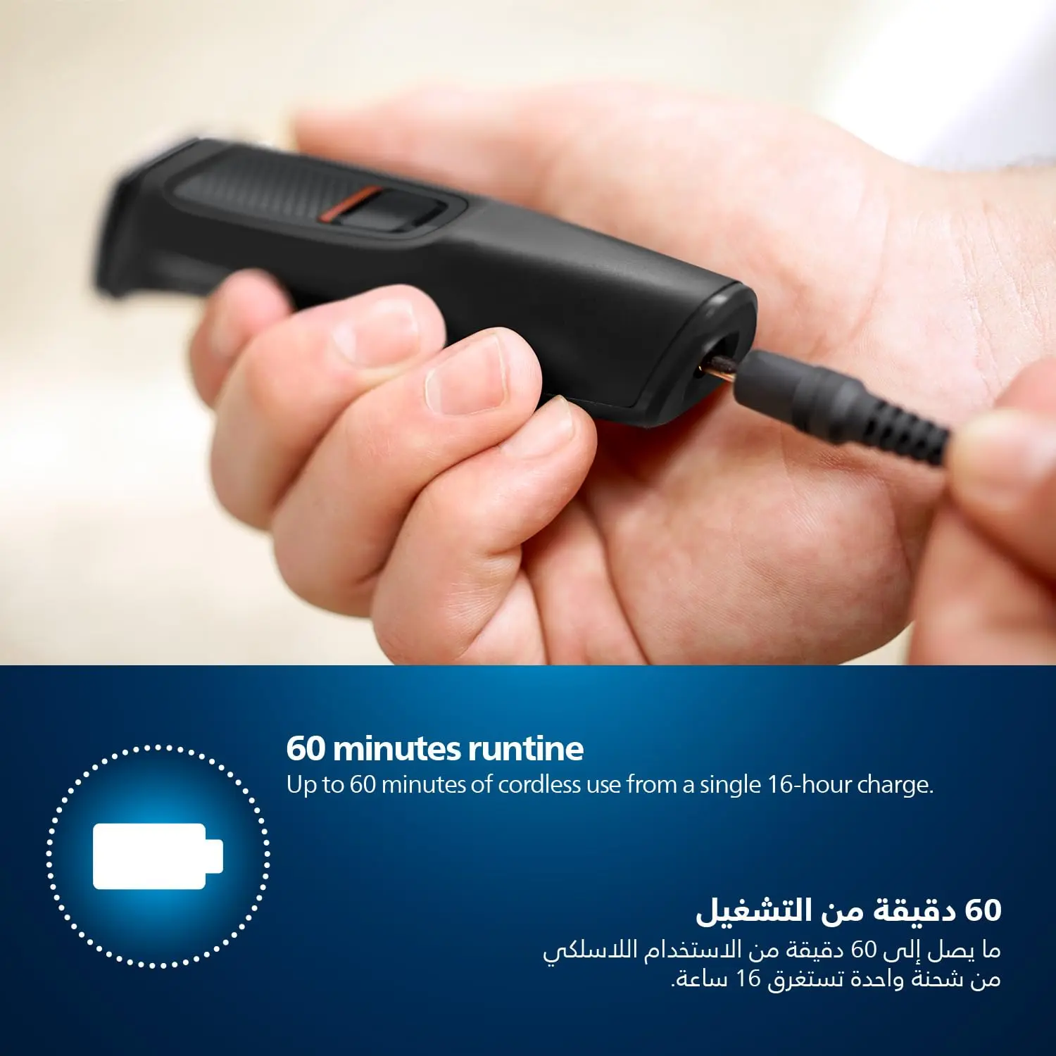 • Up to 60 Minutes Of Cordless Use Per Charge