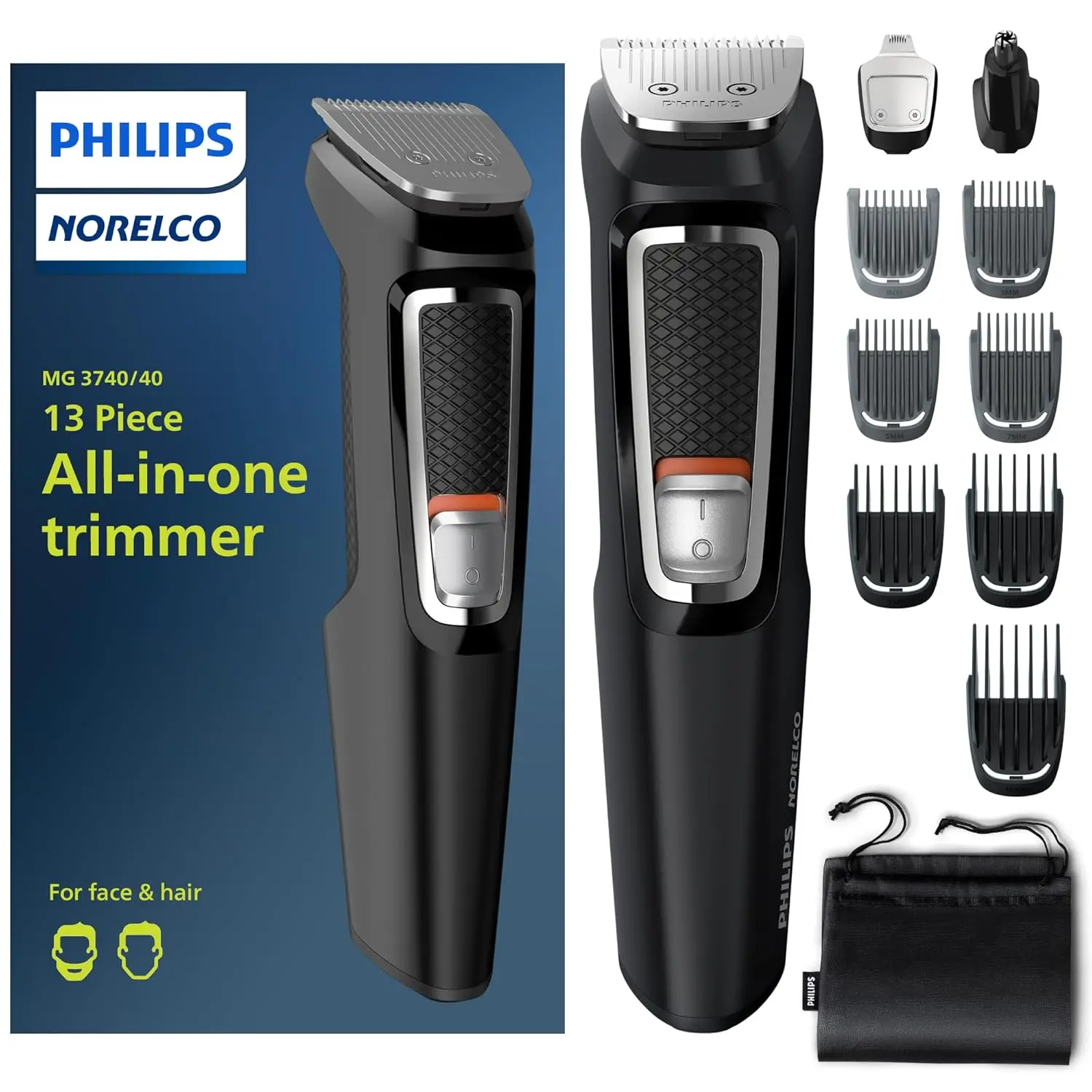 • 13-piece grooming set for beard, face, and nose.