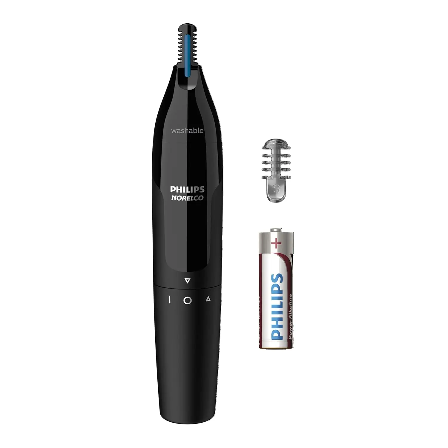 Experience ultimate comfort and say goodbye to painful hair pulling with the Philips Norelco Nose Trimmer 1000. This innovative trimmer is designed with your sensitive skin in mind. The NEW Protective Guard System creates a crucial barrier between your skin and the sharp, dual-sided steel blades. This protective layer ensures efficient hair trimming without any of the uncomfortable pulling or tugging you might have experienced with other trimmers. Now you can confidently and comfortably remove unwanted nose and ear hair, knowing your skin is shielded from irritation. The dual-sided steel blades efficiently and quickly cut unwanted hair, saving you time and effort. Plus, the trimmer is fully washable, making cleaning a breeze – simply rinse it under the faucet. For your convenience, an AA battery is included, so you can use it right out of the box. Get the Philips Norelco Nose Trimmer 1000 for a painless and easy grooming experience! It’s the perfect solution for maintaining a neat and tidy appearance with minimal effort and maximum comfort. The compact design makes it travel-friendly, so you can always look your best, wherever you are.