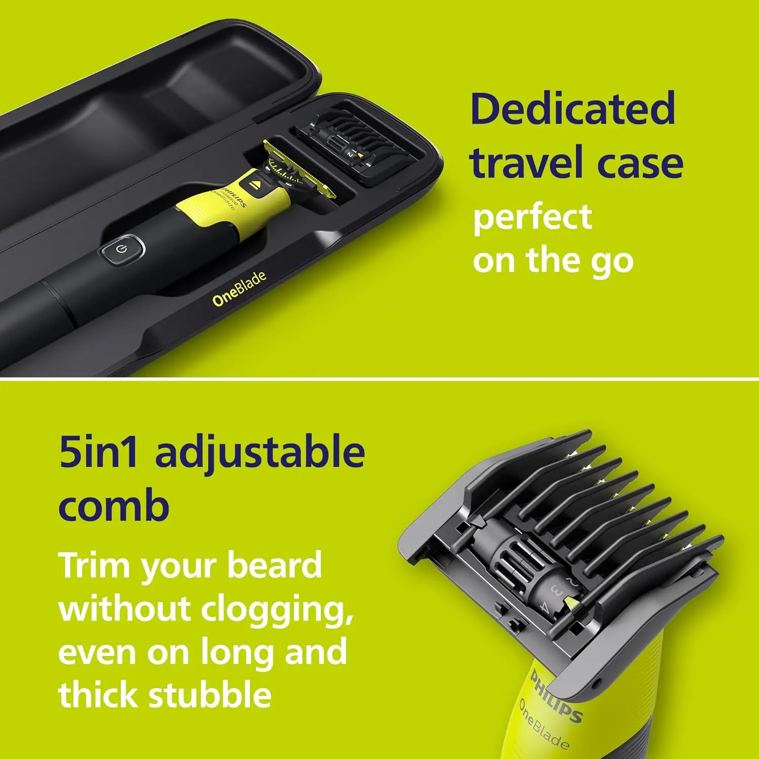 • Personalized Experience: Philips OneBlade app for blade replacement reminders and grooming recommendations.