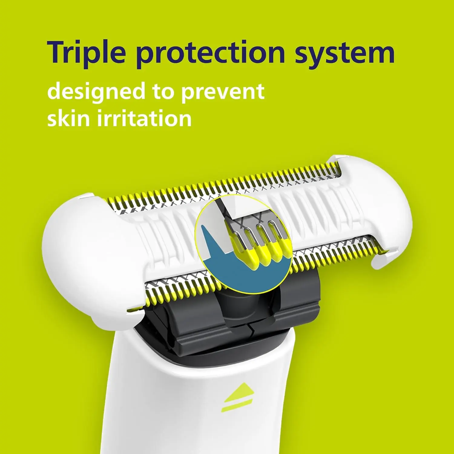 Philips OneBlade Intimate Blades offer superior skin protection, preventing irritation and shaving pimples in sensitive areas. Shave in both directions with a long-lasting blade.