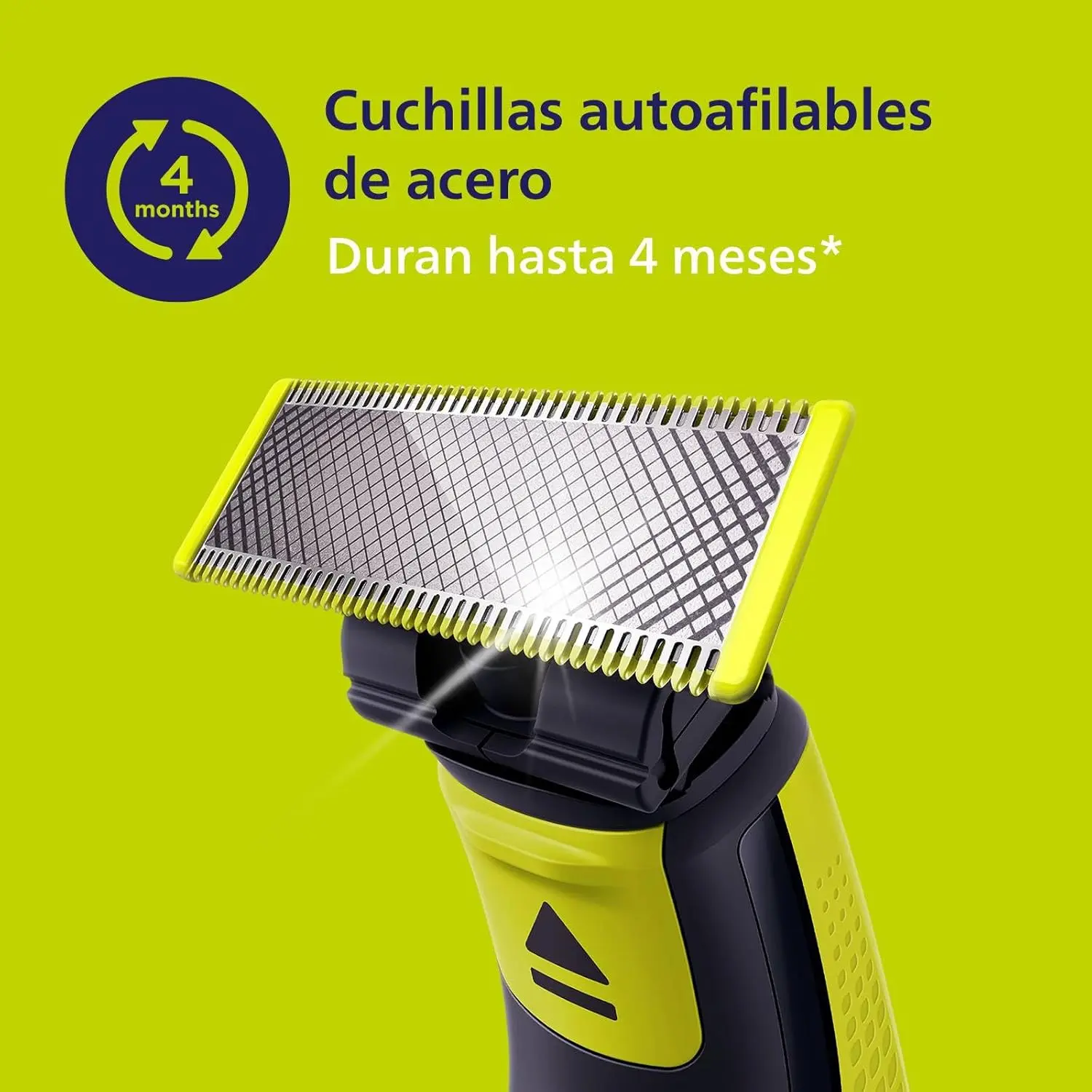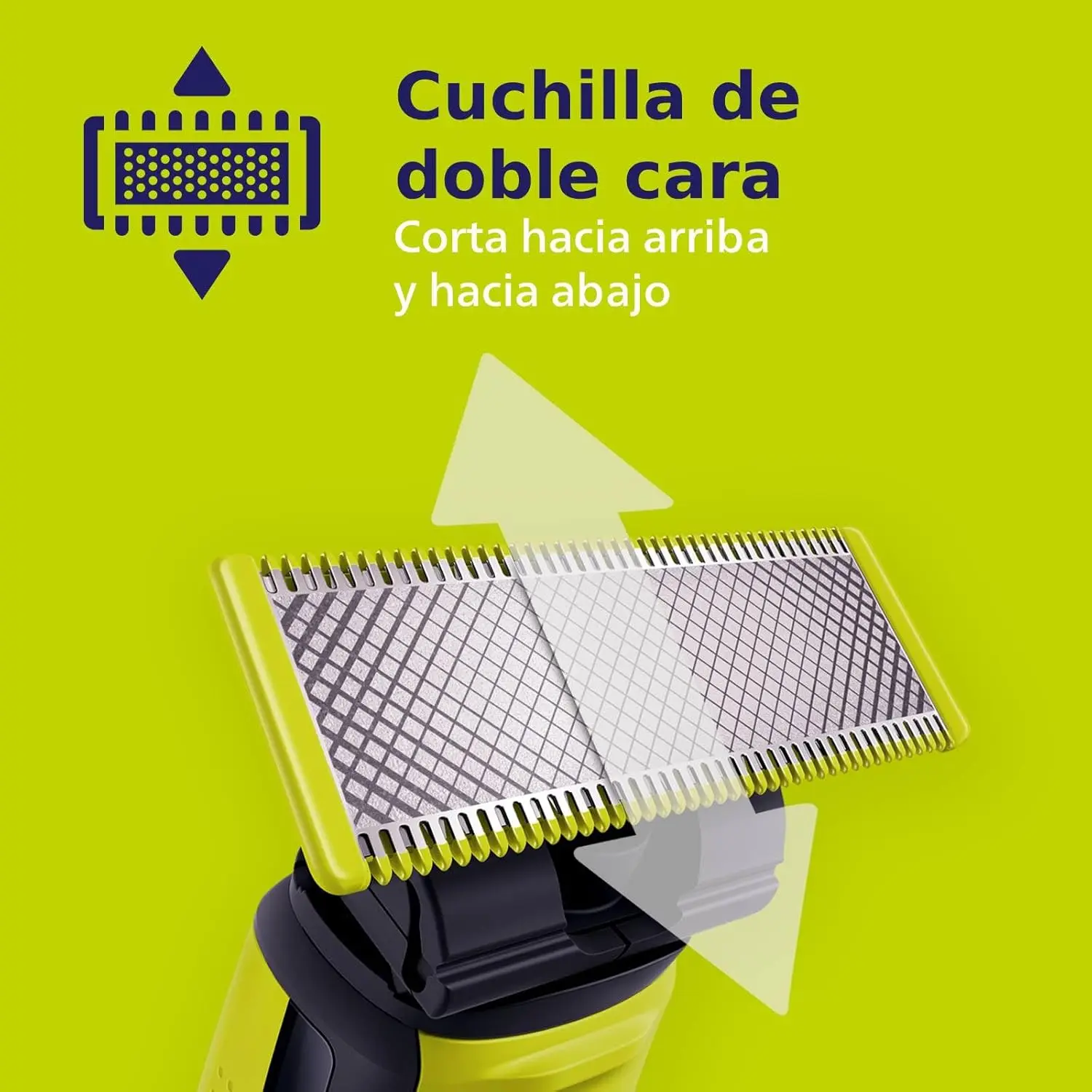 Experience the revolutionary technology of the Philips OneBlade with this replacement blade! Designed for both facial and body hair grooming, the OneBlade’s unique system allows you to easily model and design your desired look. Enjoy a comfortable shave thanks to the double protection system, featuring a sliding coating and rounded tips that glide effortlessly across your skin. The high-speed cutter, operating at 200 times per second, tackles even longer hair with efficiency and precision. Maintain optimal performance by replacing your blade every 4 months*. The replacement process is quick and hassle-free, ensuring you’re always ready to achieve your best look. This is an original Philips OneBlade cartridge, designed for trimming hair, not skin, delivering a safe and effective grooming experience. Its design ensure that it’s gentle on the skin. It’s the perfect way to achieve your desired hair style on face and body. The Philips OneBlade is a revolutionary electric grooming tool designed for men who wear facial styles, beards, or stubble. OneBlade trims, edges, and shaves any length of hair. Its unique OneBlade shaving technology integrates a fast-moving cutter (200x per second) with a dual protection system – giving you an efficient comfortable shave on longer hairs. OneBlade does not shave as close as a traditional blade – so your skin stays comfortable. Replace your blade every 4 months for optimal performance.