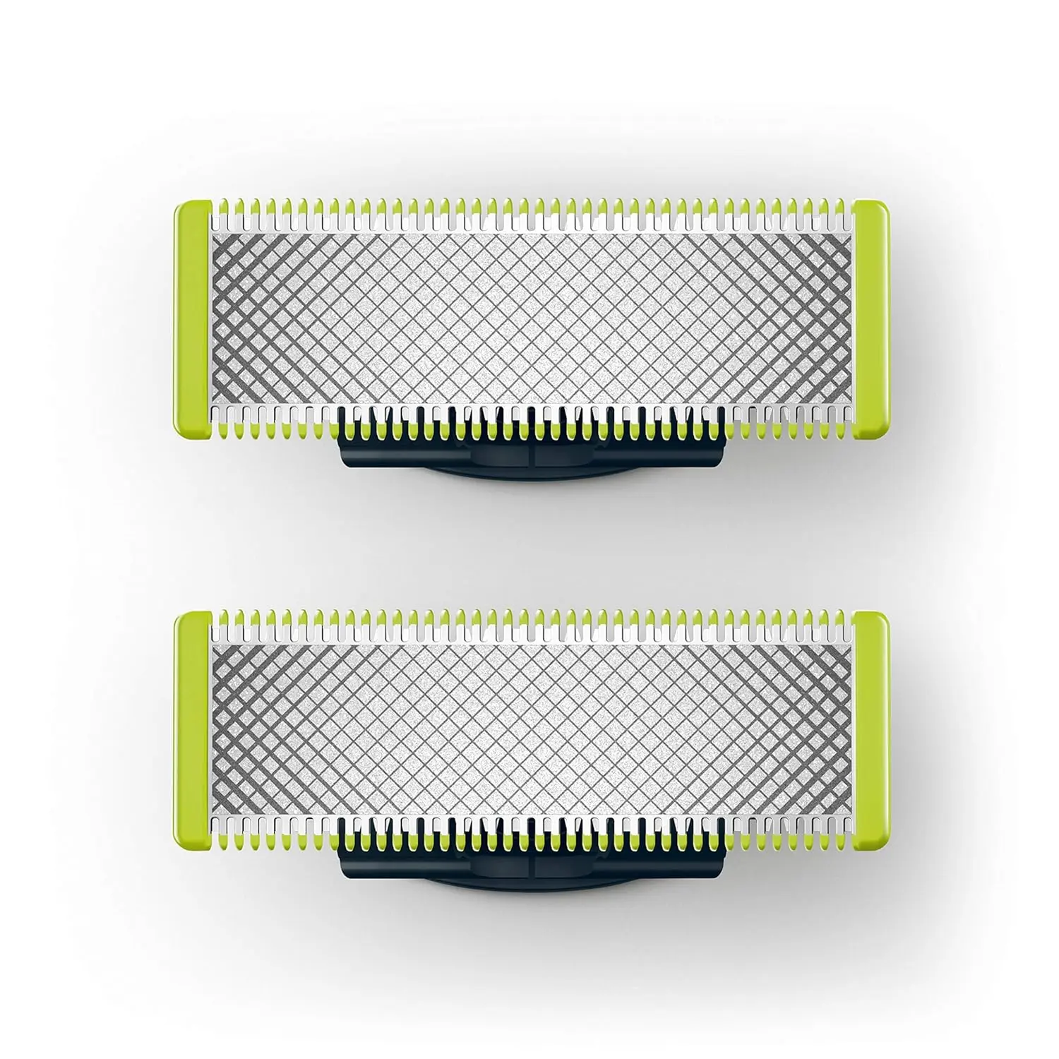 Keep your Philips OneBlade performing at its best with these replacement blades. This convenient 2-pack ensures you’re always ready for a clean, comfortable shave, trim, or edge. Each blade is designed for long-lasting performance, providing up to 8 months of use based on two full shaves per week (actual results may vary depending on individual usage habits and hair type). The built-in usage indicator conveniently reminds you when it’s time for a blade change, ensuring optimal performance and preventing irritation. These replacement blades are compatible with all OneBlade handles, making them a seamless and essential addition to your grooming routine. Whether you’re maintaining a perfectly sculpted beard, trimming body hair, or achieving a close shave, these blades deliver precise and efficient results. Don’t compromise on your grooming – keep your OneBlade sharp and ready with these reliable replacement blades. Experience the OneBlade difference and enjoy effortless grooming every time. With these blades you will always feel your best! Get yours today!