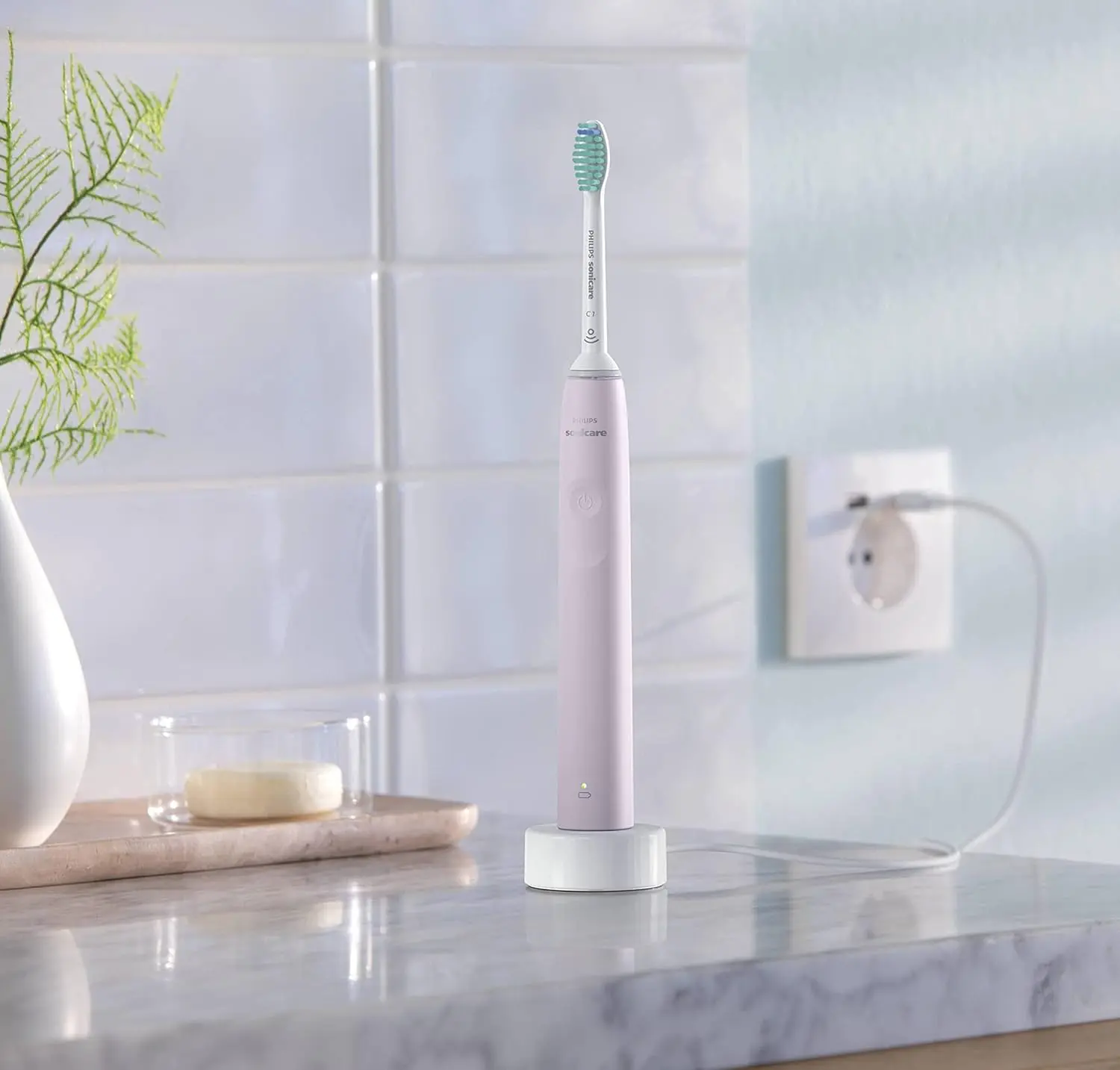 Upgrade your oral hygiene routine with the Philips Sonicare 3100 Electric Toothbrush. This powerful toothbrush is designed for adults seeking effective cleaning and improved gum health. Experience up to 3x more plaque removal along the gumline¹ compared to a manual toothbrush, thanks to the innovative C1 ProResults brush head. Our Advanced Sonic Technology delivers gentle yet powerful cleaning, pulsing fluid between your teeth and along the gumline with an impressive 62,000 bristle movements per minute. The Sonicare 3100 prioritizes your oral health and safety. A built-in pressure sensor alerts you if you’re brushing too hard, gently pulsing to remind you to ease up and protect your teeth and gums from damage. Enhance your brushing technique with smart features like EasyStart, which gradually increases brushing power for a comfortable transition to an electric toothbrush. The SmarTimer ensures you brush for the dentist-recommended 2 minutes, while the QuadPacer guides you to brush each quadrant of your mouth evenly for thorough cleaning. This comprehensive set includes the Philips Sonicare 3100 electric toothbrush handle, one C1 ProResults brush head, a convenient charger, and a travel case, perfect for maintaining your oral health on the go. Experience the difference of a Sonicare clean and achieve a healthier, brighter smile.