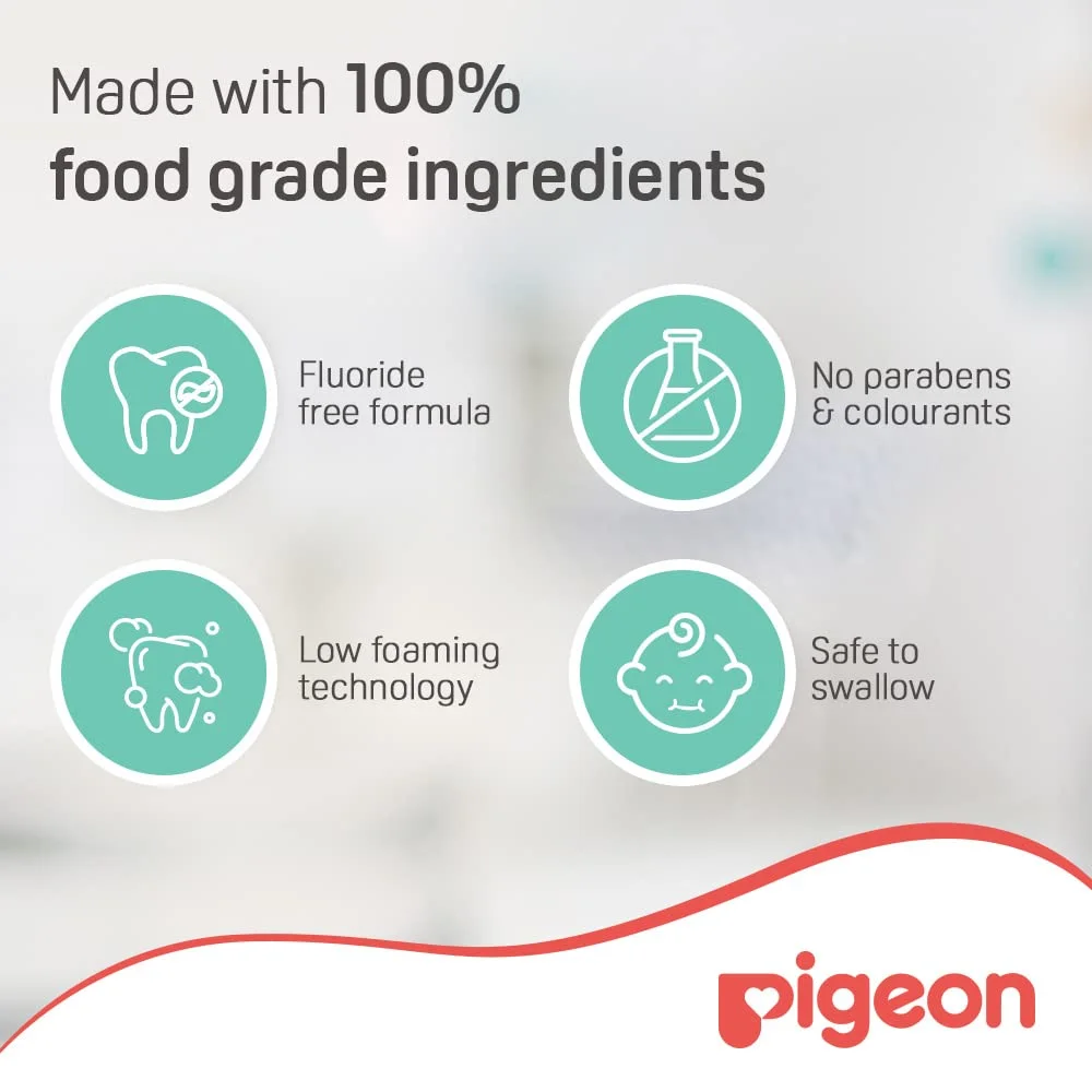 Start your baby on a path to healthy oral care with Pigeon Baby Tooth Gel. This specially formulated tooth gel, with a delightful grape flavor, is designed to gently clean and protect your little one’s teeth and gums. Containing 1000ppm fluoride, it actively works to strengthen tooth enamel and prevent cavities from forming. Parents can rest assured knowing Pigeon Baby Tooth Gel is made with 100% food-grade ingredients, ensuring a safe and worry-free experience for their child. The low-foaming formula is easy to use and rinse off, making toothbrushing a simple and enjoyable routine for both baby and parent. It effectively cleans while remaining gentle on delicate gums. Free from parabens and sodium lauryl sulfate. This product is easy to use with low foaming formulation.
