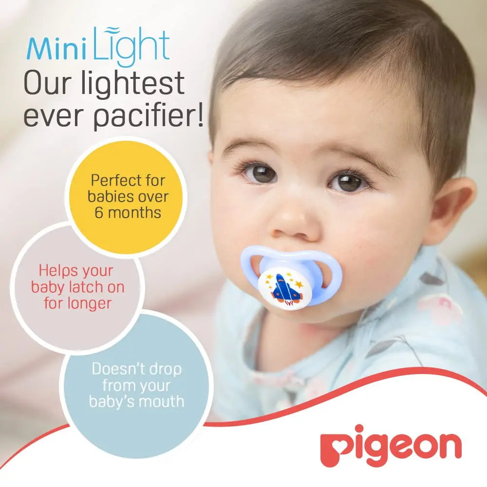 Soothe your baby with the Pigeon Minilight Pacifier, a lightweight and safe option designed for babies 6+ months. This pacifier is crafted with an ultra-light design, making it easier for your little one to hold and keep in their mouth. The soft silicone nipple is gentle on delicate gums and emerging teeth, providing a soothing and comfortable experience. Made from BPA-free materials, you can rest assured that your baby is not exposed to harmful chemicals. The ergonomic design is thoughtfully shaped to fit comfortably in your baby’s mouth, minimizing irritation and promoting natural nasal breathing. Cleaning is a breeze, as the pacifier is easy to sterilize and keep hygienic. This easy sucking soother has breather holes for enhanced safety. The Pigeon Minilight Pacifier is developed based on research on infant oral development.Give your baby the comfort they deserve with a pacifier designed with their well-being in mind.