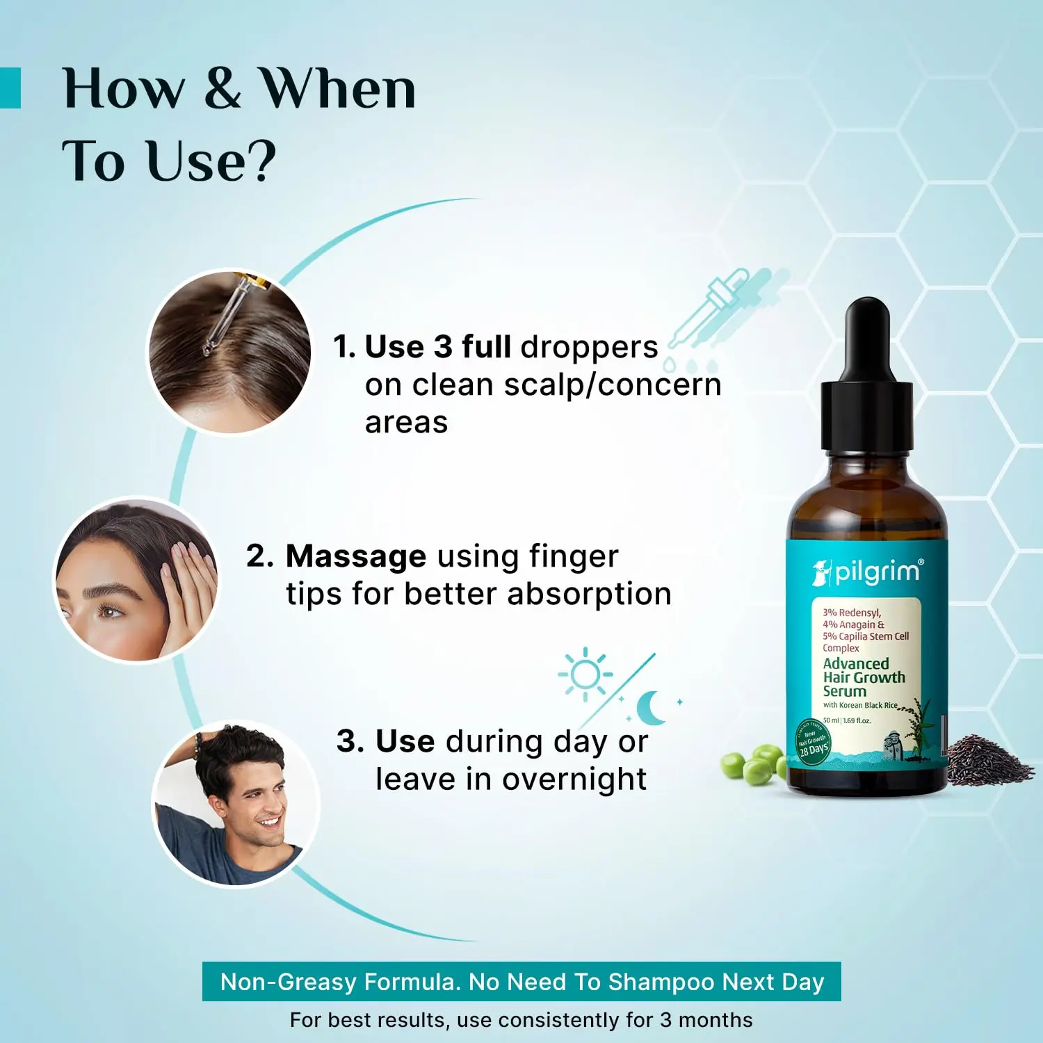 Pilgrim Redensyl Hair Growth Serum boosts hair density & strength. Anagain fights thinning, perfect for all hair types. Achieve fuller, healthier hair effortlessly.