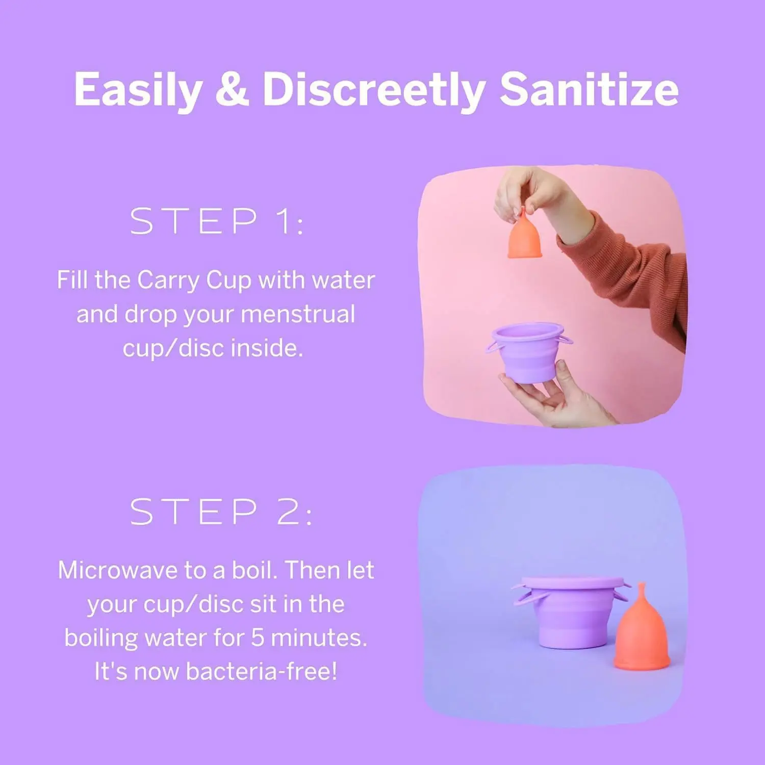 Keep your menstrual cup clean and sanitized with the Pixie Cup Sterilizing Container! This foldable container offers a discreet and convenient way to sterilize your menstrual cup or disc, whether you’re at home, in a dorm, or on the go. Forget about boiling your cup in a shared kitchen – simply fill the container with water, insert your cup, and microwave! Its collapsible design makes it incredibly compact and easy to slip into your bag or purse. Perfect for quick rinses in public restrooms, the Pixie Cup Sterilizing Container ensures your cup is always ready for use. The size is compatible with most silicone menstrual cups, discs, and even kegel weights, making it a versatile addition to your feminine hygiene routine. Plus, every purchase helps a woman in need – we donate a cup for every one you buy! Join us in supporting menstrual equity while enjoying a cleaner, more convenient menstrual cycle. With the Pixie Cup Sterilizing Container, maintaining optimal hygiene is easier than ever. Experience the freedom and confidence that comes with knowing your menstrual cup is always clean and ready.