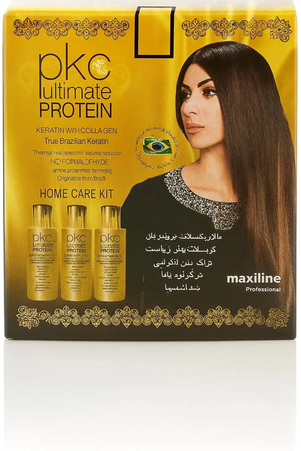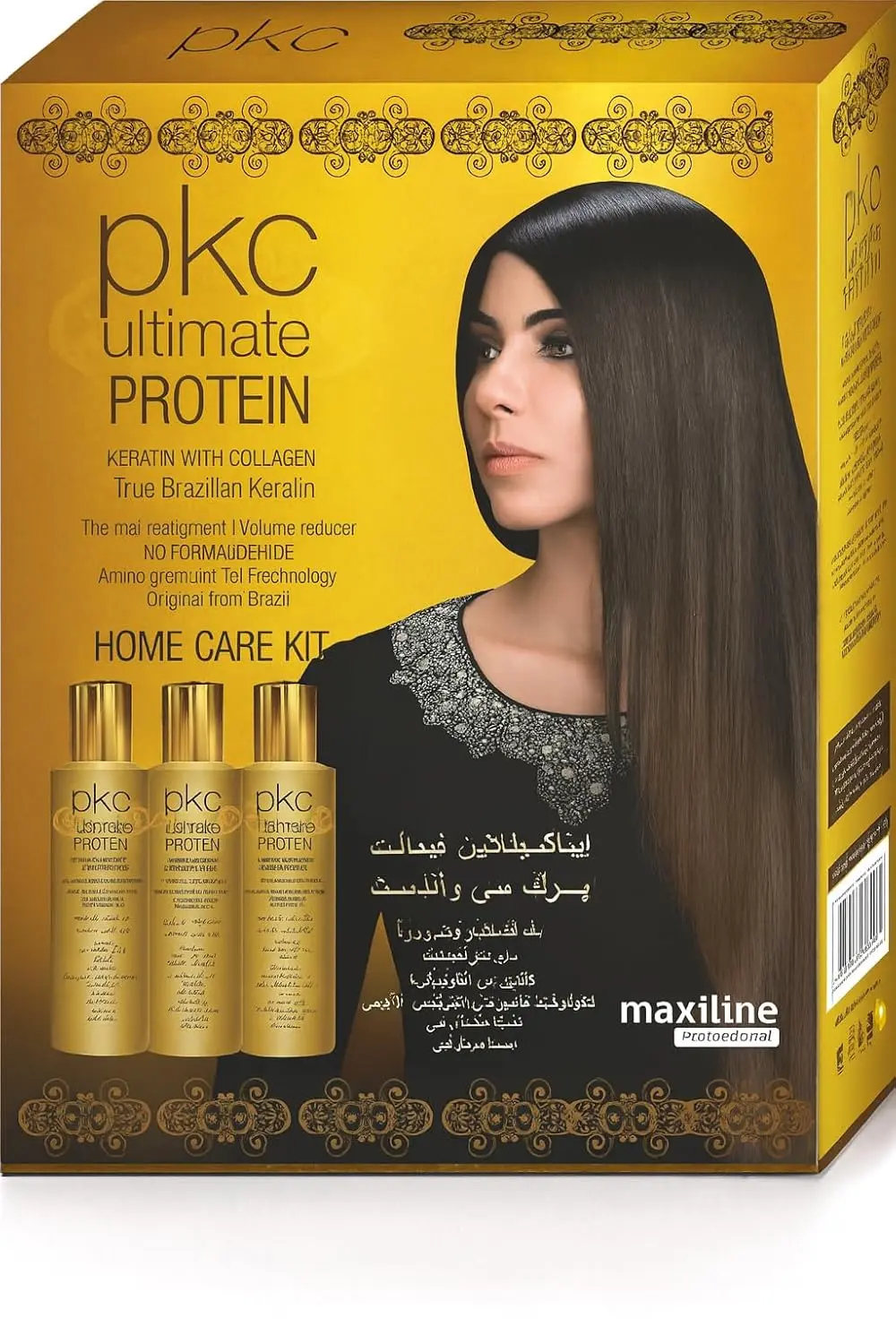 PKC Protein Keratin Collagen Hair Straightening Kit for extreme volume reduction, fiber alignment, anti-frizz, and extraordinary smoothness. Experience salon-quality results at home!