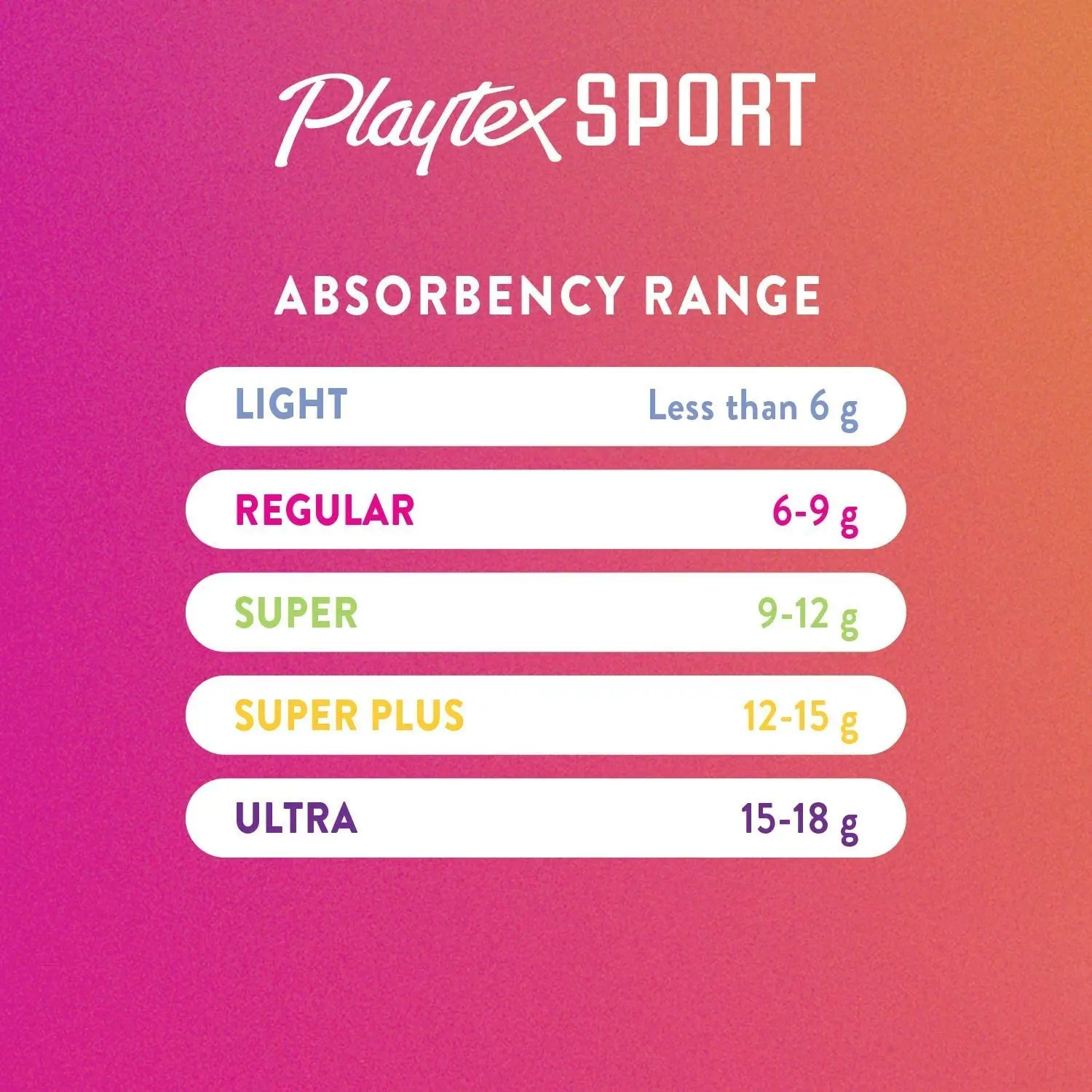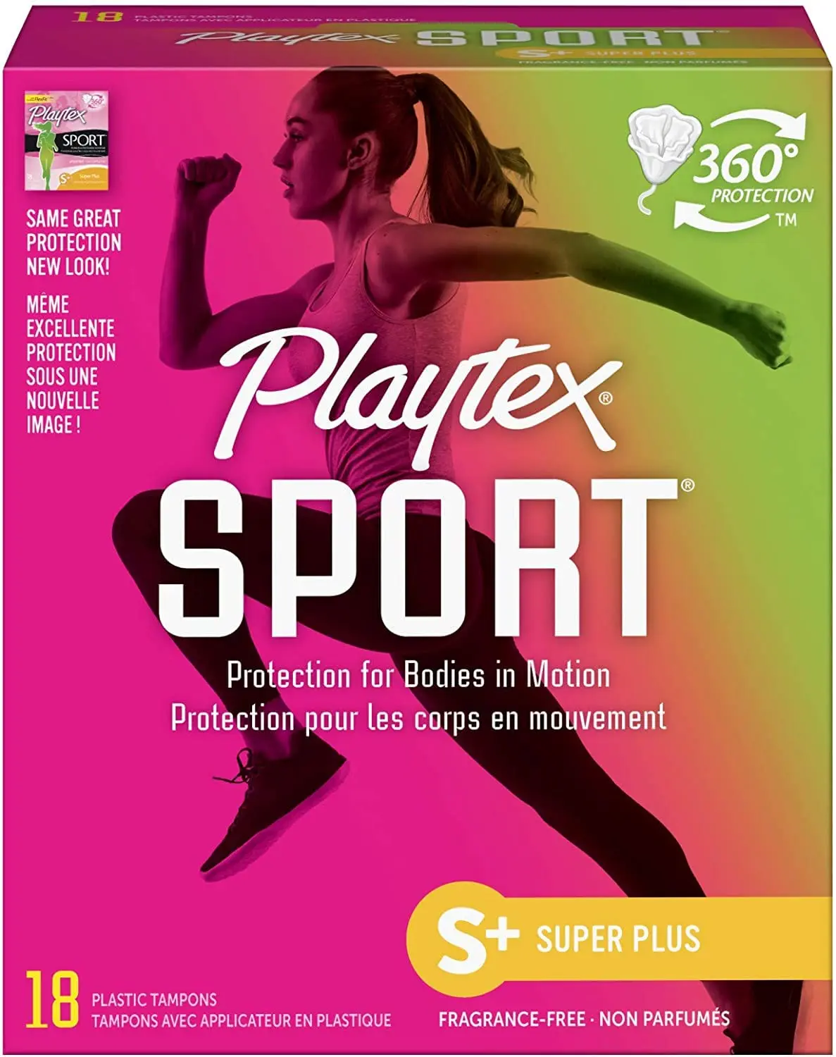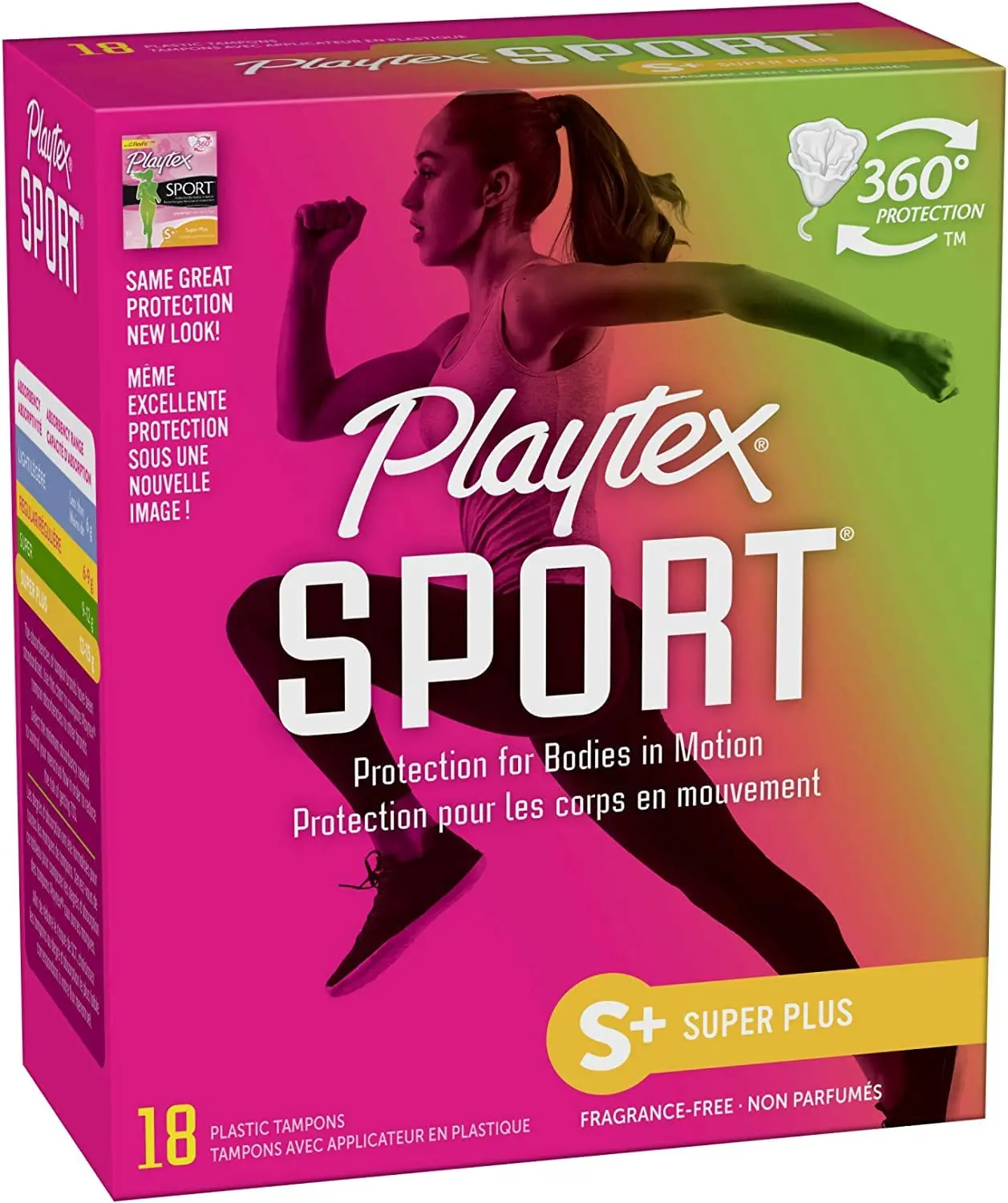Experience unbeatable comfort and reliable protection with Playtex Sport Super Plus Tampons. Designed for your active lifestyle, these tampons feature a unique Custom-Fit 360 Degree Design that expands all around to conform to your body with every move you make. This innovative design ensures incredible comfort and helps prevent leaks, so you can stay confident and focused on your activities. The Contoured Applicator with a No-Slip Grip provides comfortable and easy insertion. The shape is designed for your comfort. For added peace of mind, these tampons feature an Anti-Leak Backup Layer, a unique second layer of defense against leaks. Trust Playtex, a leader in feminine hygiene products, to provide the protection you need to stay comfortable and confident all day long. Each box contains 18 Super Plus absorbency tampons, perfect for heavy flow days. Enjoy the freedom to move without worry with Playtex Sport Super Plus Tampons.